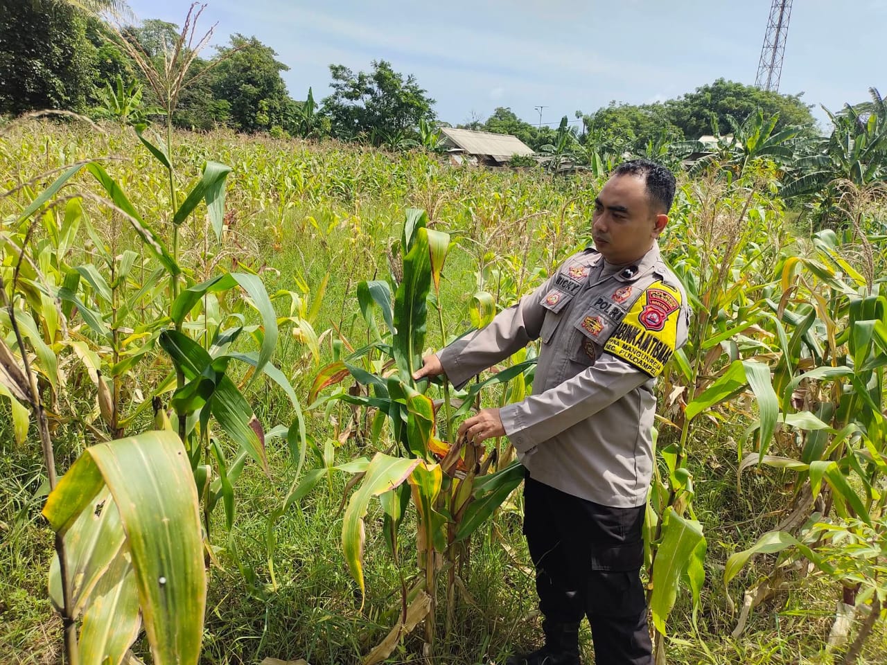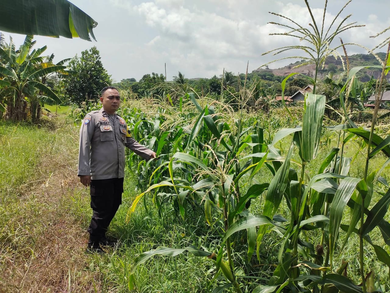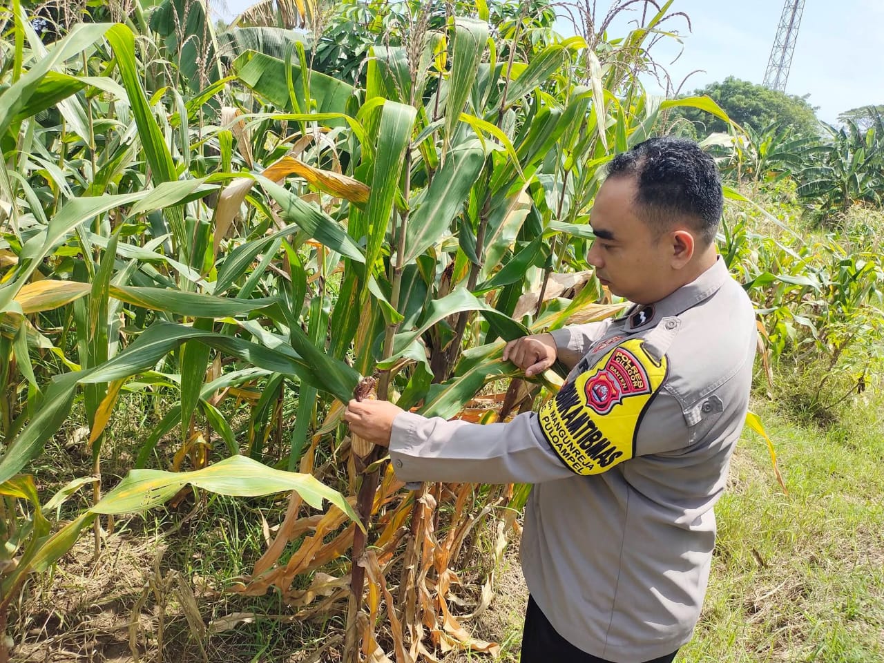 Pantau lahan jagung pok tani sinarjaya kecamatan.puloampel Desa Argawana oleh Bhabinkamtibmas Polsek Puloampel