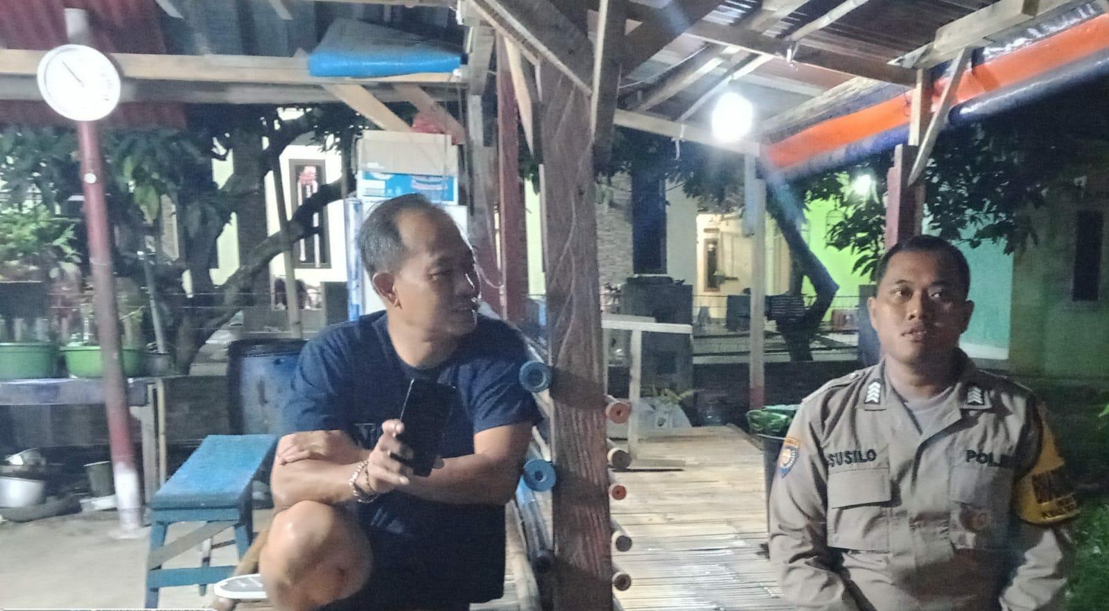 Bhabinkamtibmas menyambangi warga yang sedang duduk-duduk santai dan ngobrol , pada kesempatan yang baik tersebut Bhabinkamtibmas menyampaikan pesan-pesan kamtibmas dan Mengajak masyarakat untuk meningkatkan kewaspadaan serta untuk bersama-sama ikut serta menjaga keamanan lingkungan guna mencegah terjadinya gangguan kamtibmas.