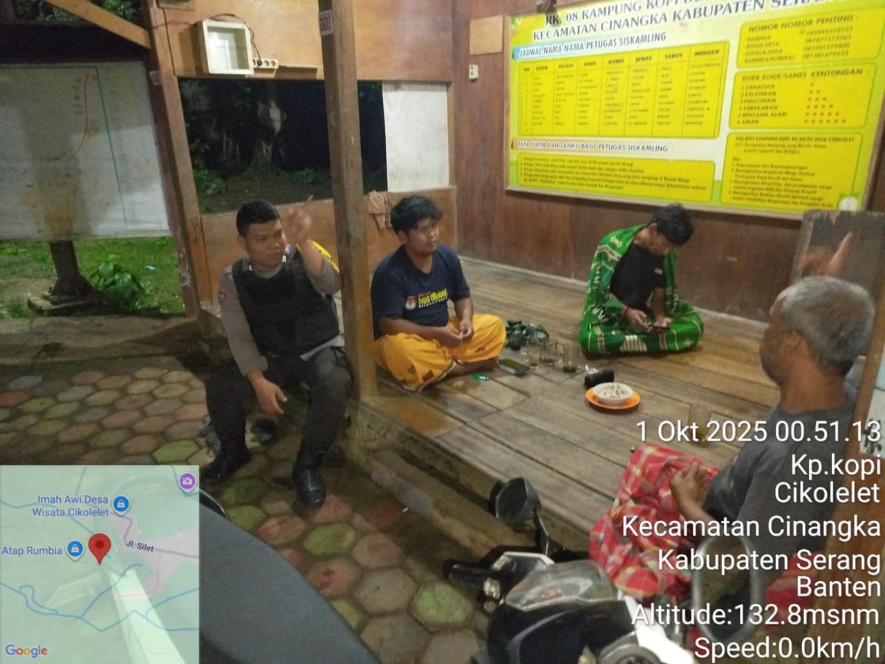 *Polres Cilegon* || Personil Bhabinkamtibmas Polsek Cinangka melaksanakan Program Komandan Wish Kapolda Banten RONDA SATKAMLING menyampaikan komunikasi dengan Petugas Siskamling agar berperan aktif dalam menciptakan Harkamtibmas yang aman dan Kondusif, Rabu (01/10/2025).