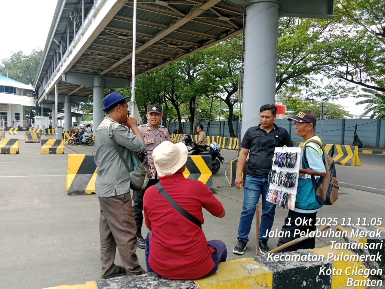 Cilegon - Personel Polsek Kskp Merak Polres Cilegon Polda Banten melaksanakan sambang dan patroli kawasan pelabuhan merak dalam rangka menjaga Harkamtibmas di Kawasan Pelabuhan Merak, Rabu (01/10/2025).