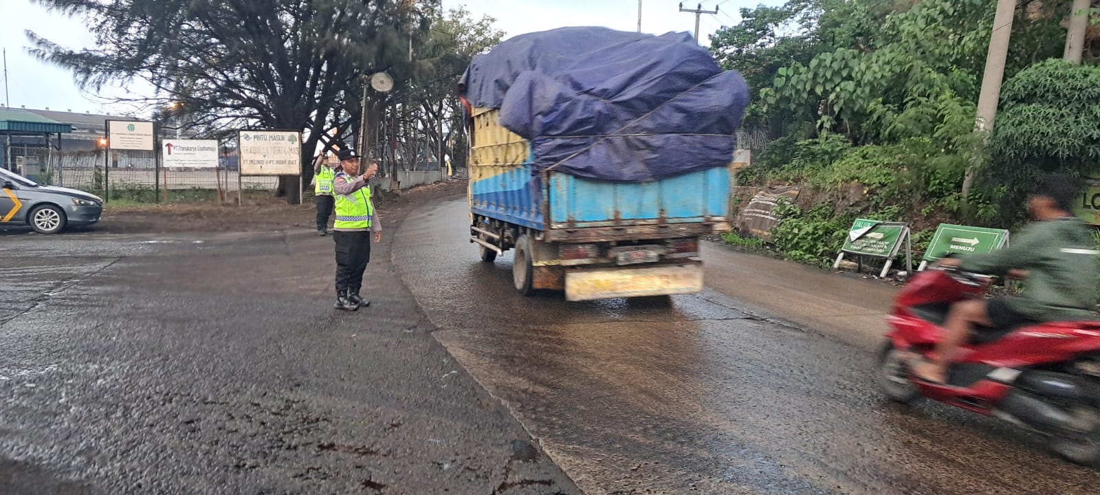 Polsek KSKP Merak Atur Antrian Kendaraan R4 Menuju Kapal Ferry di Pelabuhan Merak