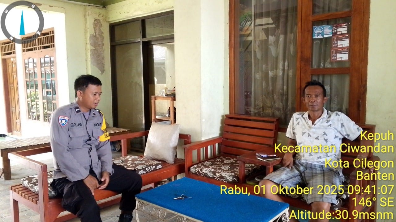 Cilegon - Bhabinkamtibmas Polsek Ciwandan Polres Cilegon Polda Banten  Melaksanakan kegiatan Dialogis/Sambang Door to Door Sistem (DDS) Di daerah binaannya serta memberikan Pesan-pesan Kamtibmas Guna Menciptakan situasi Harkamtibmas yang Aman dan nyaman, Rabu (01/10/2025).