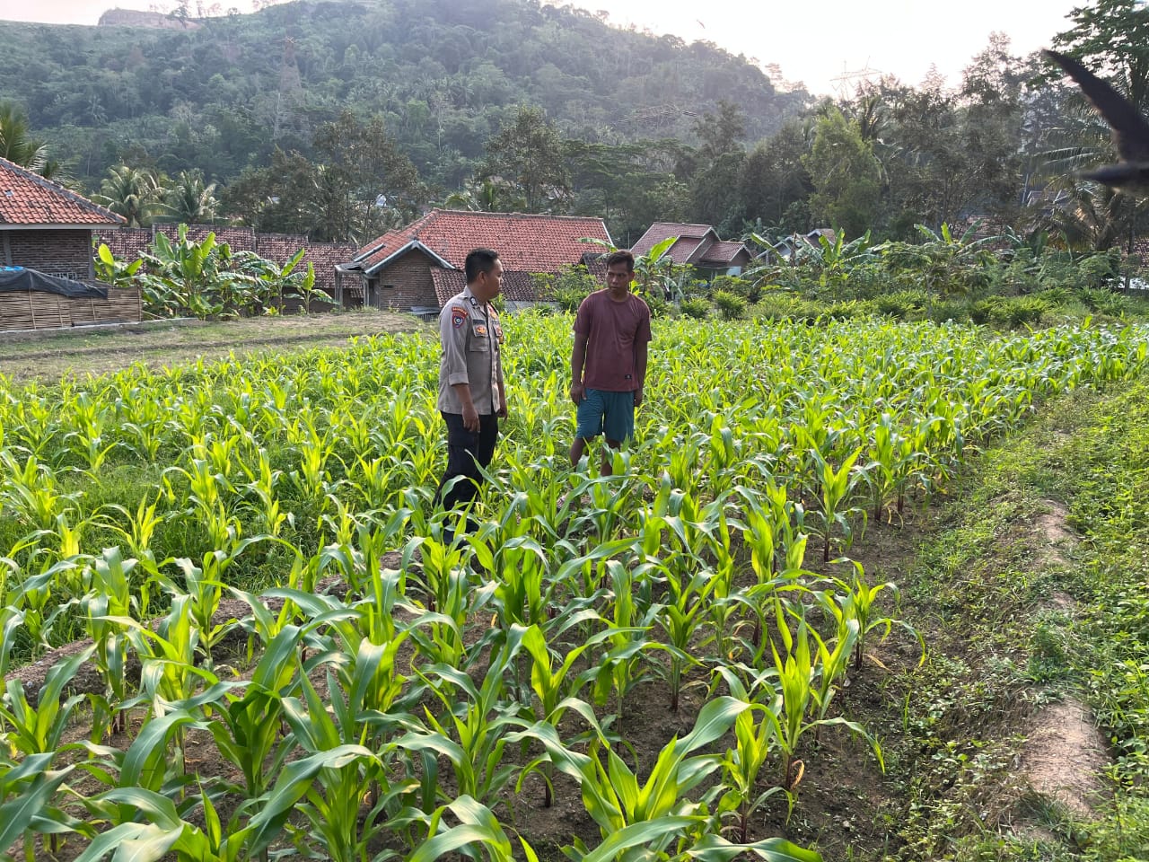 Cilegon || Dalam rangka mendukung program ketahanan pangan Kanit Binmas dan Bhabinkamtibmas Polsek Bojonegara Polres Cilegon Polda Banten guna mewujudkan Asta Cita menuju Swasembada Pangan nasional berbasis lokal, bhabinkamtibmas desa Lambangsari melaksanakan kegiatan pengecekan dan pendataan lahan pekarangan milik warga yang digunakan sebagai lahan perkebunan tanaman jagung , Sabtu (04/10/2025).