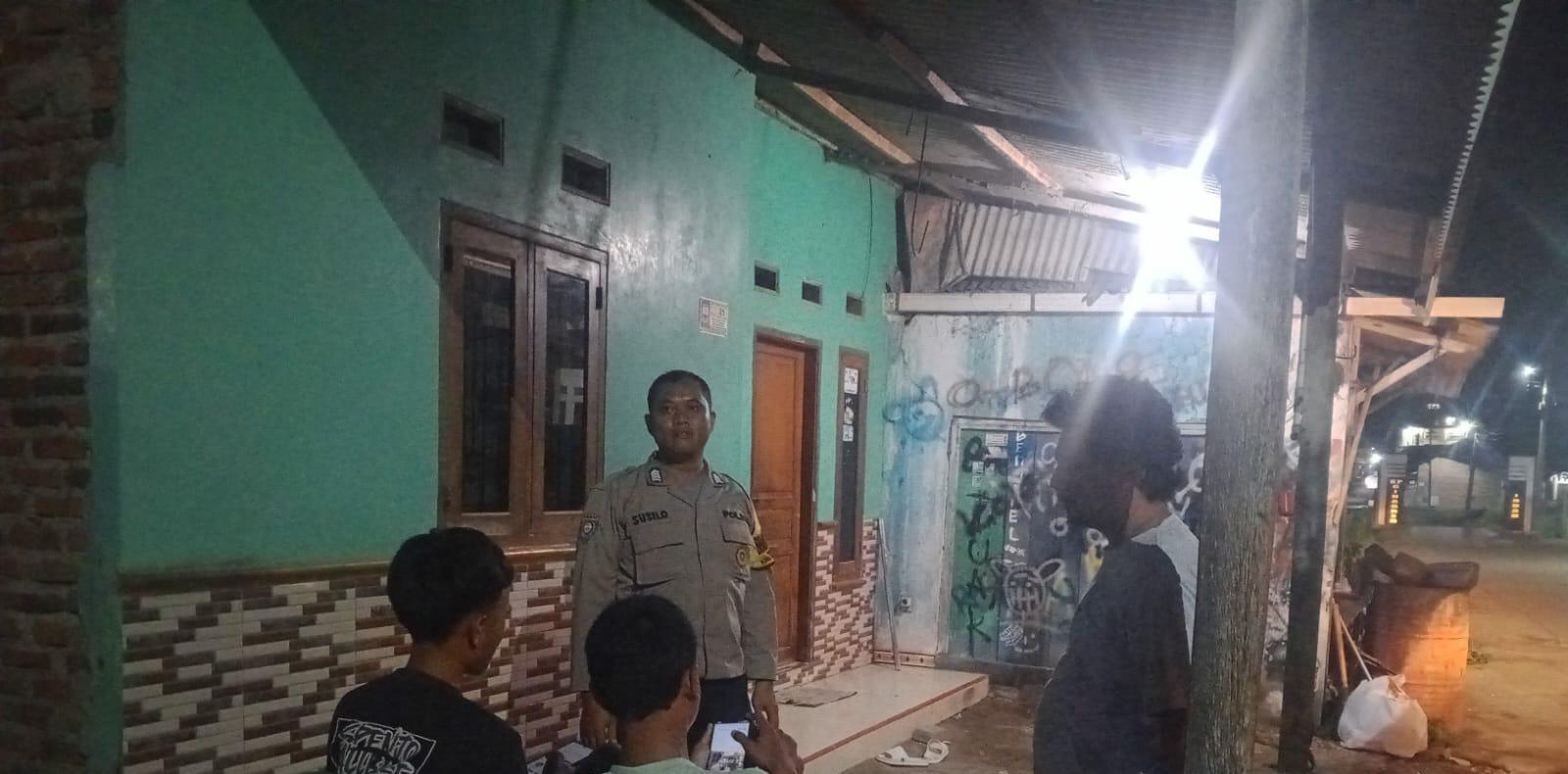 Cegah Gangguan Kamtibmas Sekecil Apapun Di Malam Hari, Aipda Linggar Bersama Bripka Susilo Polsek Bojonegara Sambangi Warga Dan Sosialisasi Call Center 110