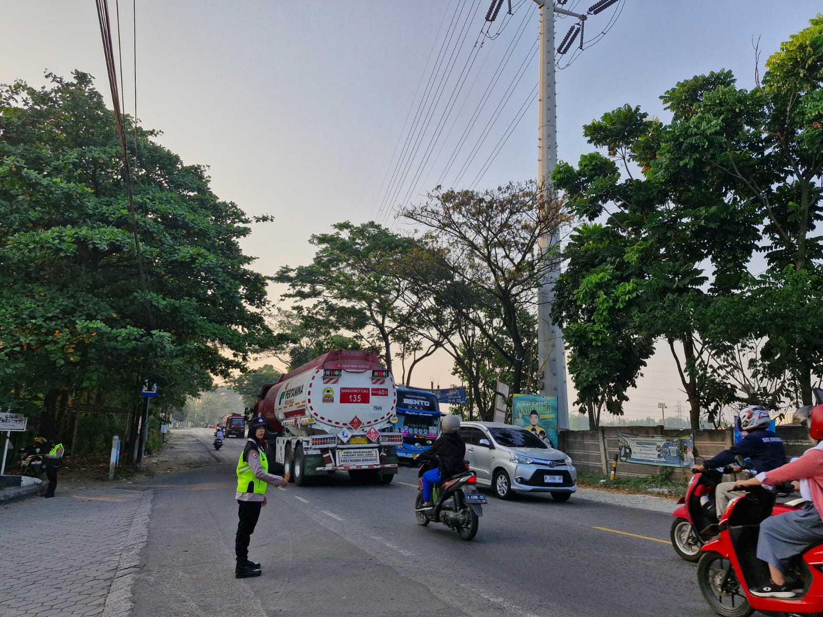 Cilegon,Polres Cilegon Polda Banten Pada Selasa/07/10/2025 Pukul 06.30 Wib, Personil Siwas Polres Cilegon, Aipda Emi Prasetyo melaksanakan kegiatan pengaturan arus lalu lintas di Jalur Protokol jalan utama Kota Cilegon tepat nya di jalur depan perumahan arga baja Pura Kota Cilegon.