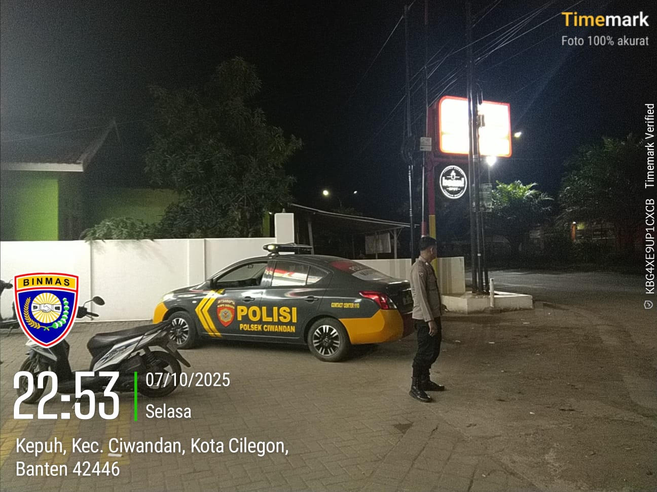 Cilegon - Personil Polsek Ciwandan Polres Cilegon Polda Banten melaksanakan patroli malam untuk mengantisipasi potensi kejahatan, khususnya pembobolan minimarket, di daerah hukum Polsek Ciwandan. Kegiatan ini bertujuan untuk meningkatkan keamanan dan memberikan rasa aman kepada masyarakat, Rabu (08/10/2025).