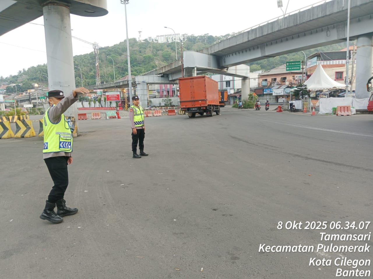 Guna Wujudkan Kamseltibcarlantas, Polsek KSKP Merak Lakukan Pengaturan Lalu Lintas di Pelabuhan