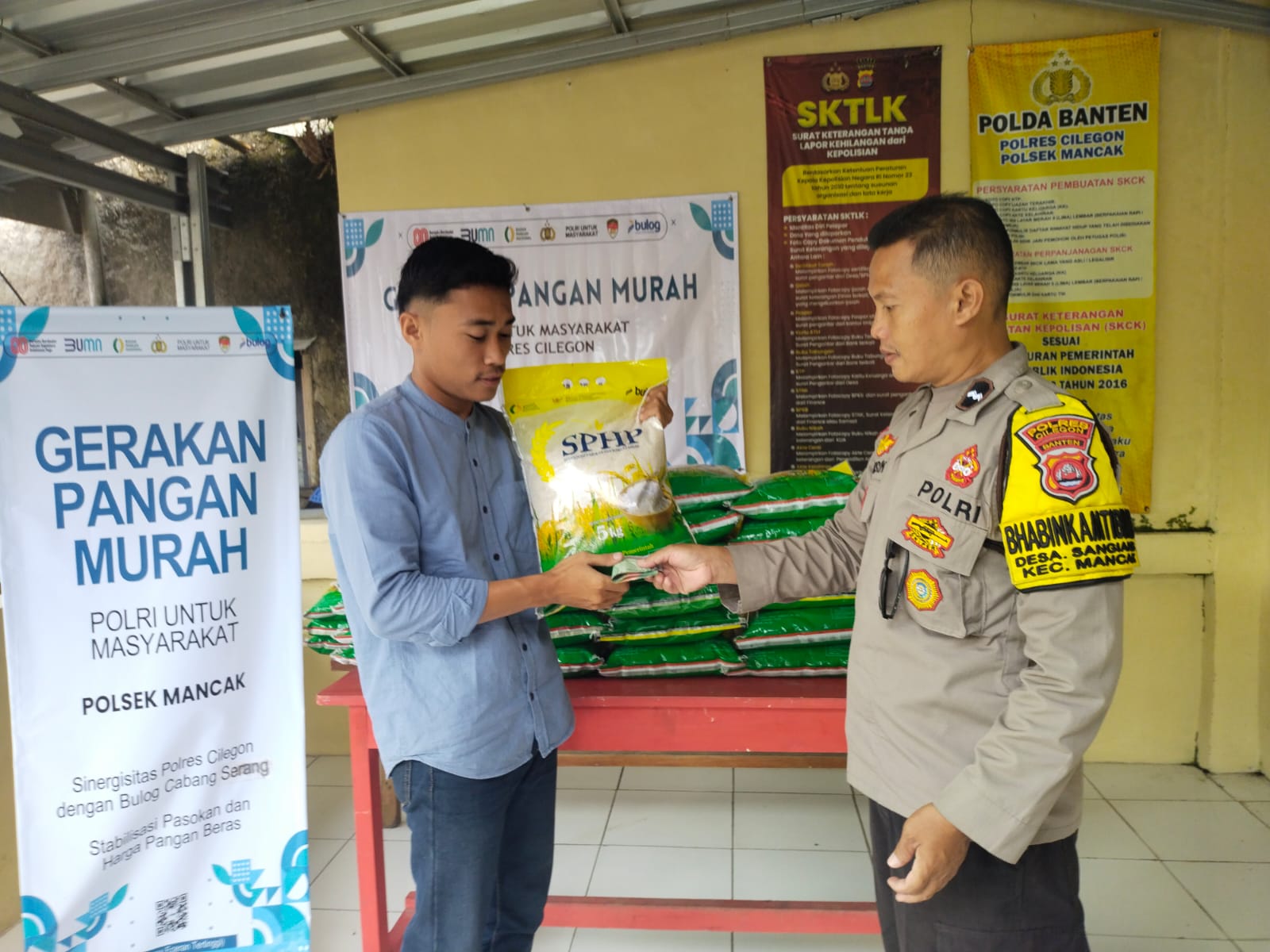 Mancak - Sebagai Pengemban Fungsi Harkamtibmas, Bhabinkamtibmas Polsek Mancak Polres Cilegon Laksanakan Gerakan Pangan Murah Beras SPHP di Mapolsek Mancak Desa Labuan Kecamatan Mancak Kab Serang. SABTU, 11/10/2025