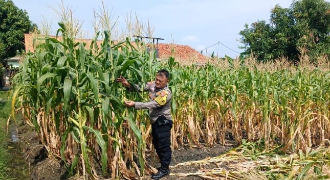 Bhabinkamtibmas Aiptu Daryo.E Polsek Purwakarta Terjun ke Kebun Langsung membantu Panen Jagung yang merupakan Warga Binaanya di Link. Daliran Kelurahan Kebondalem Kecamatan Purwakarta