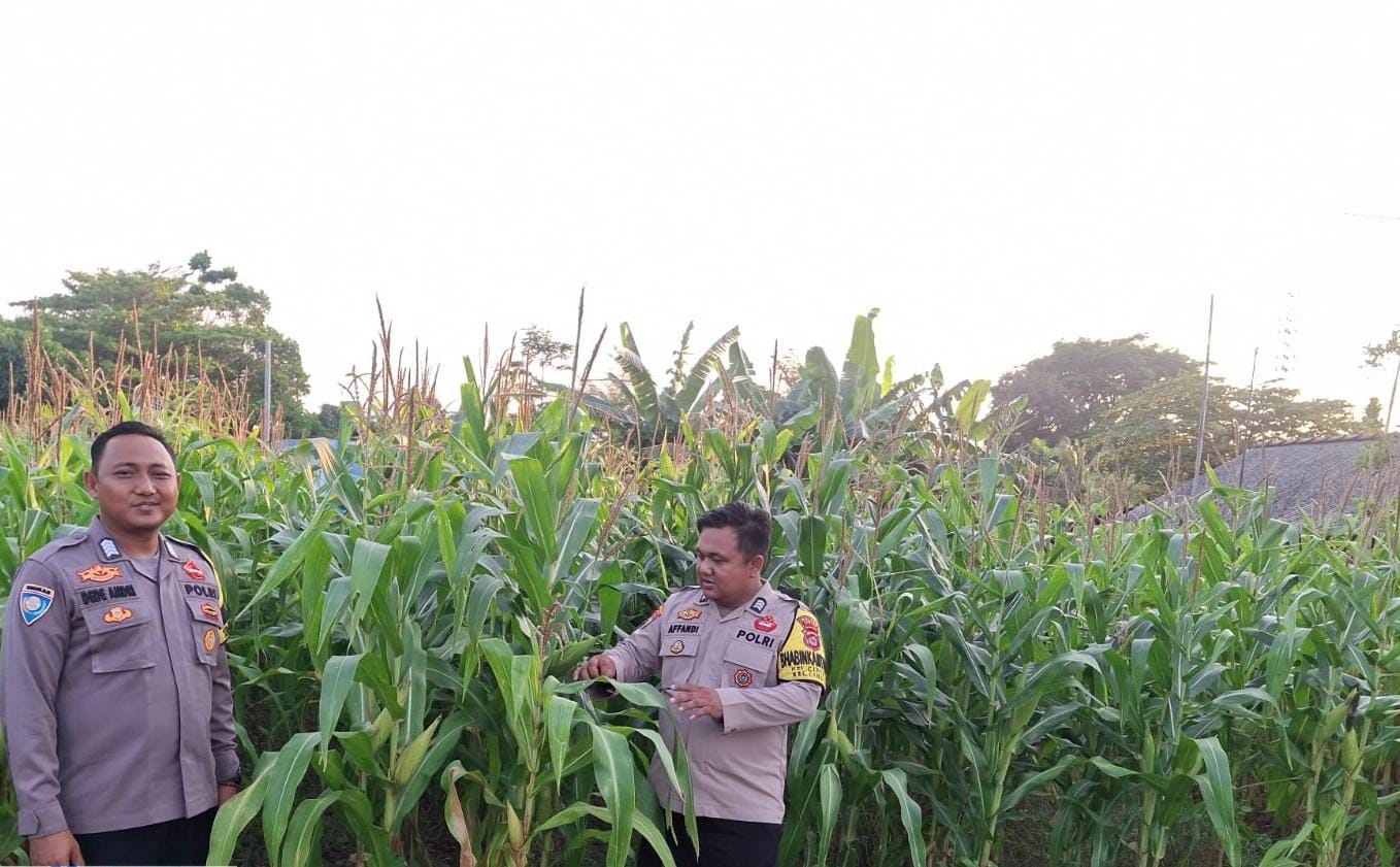 Dukung Ketahanan Pangan, Bhabinkamtibmas Cibeber Pantau Perkebunan Jagung