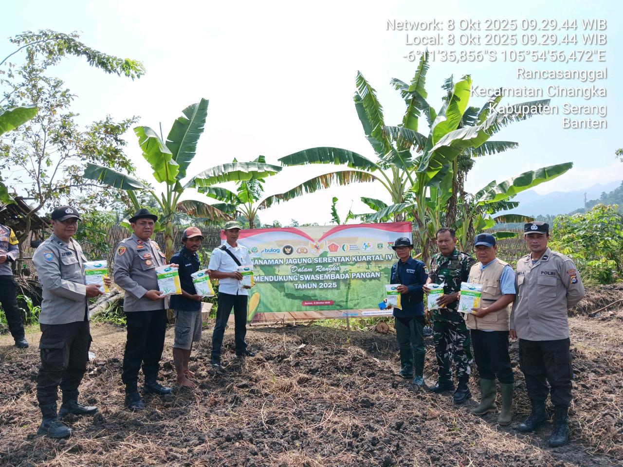 -POLRES CILEGON- Polda Banten.Mendukung program ketahanan pangan nasional, Polres Cilegon,Polsek Cinangka bersama Ketua Kelompok Tani melaksanakan penanaman jagung serentak di Desa Rancasanggal Kecamatan Cinangka Kab Serang. Rabu (10-08-2025)