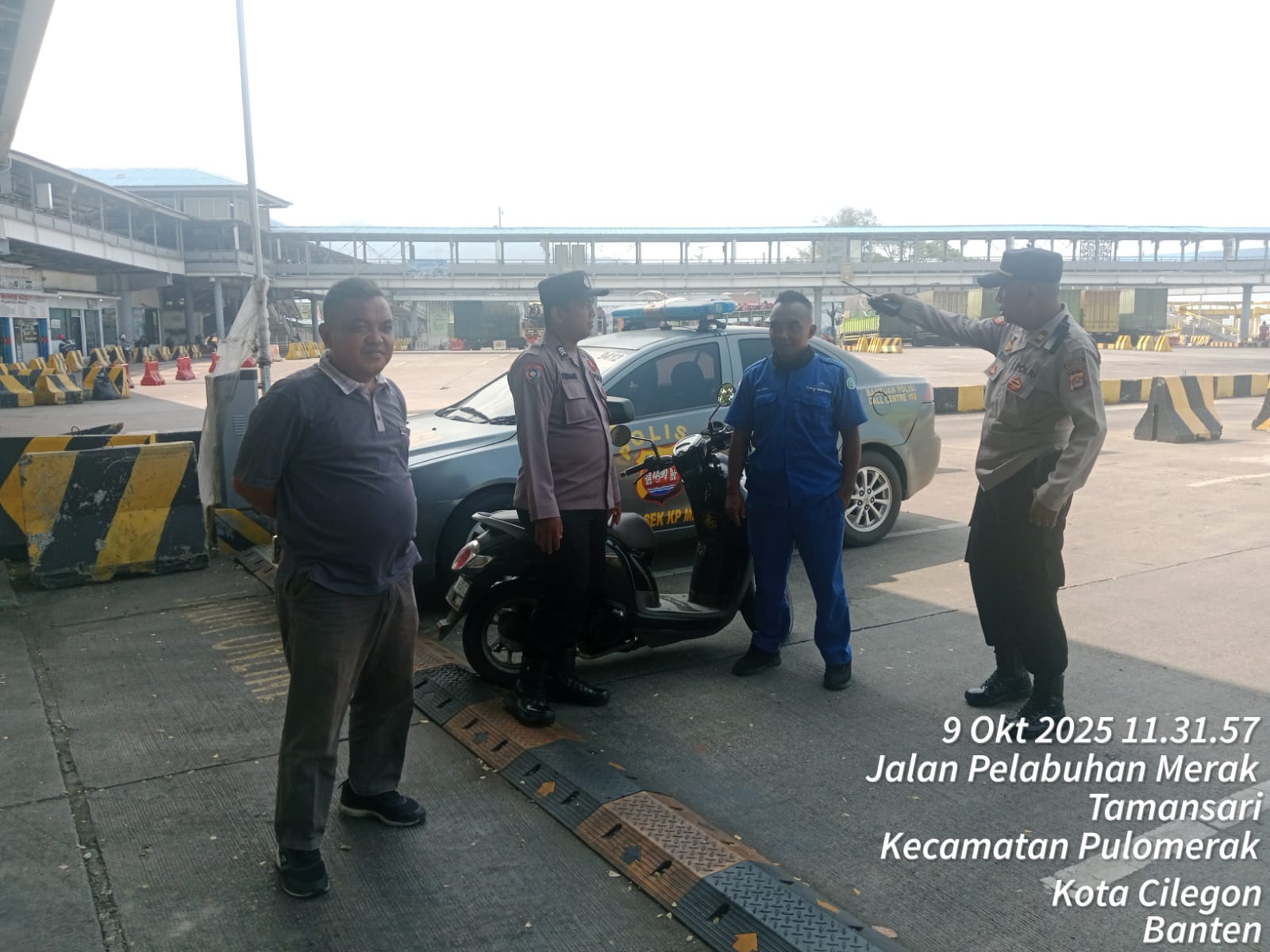 Cilegon - Personel Polsek Kskp Merak Polres Cilegon Polda Banten melaksanakan sambang dan patroli kawasan pelabuhan merak dalam rangka menjaga Harkamtibmas di Kawasan Pelabuhan Merak, Kamis (09/10/2025).