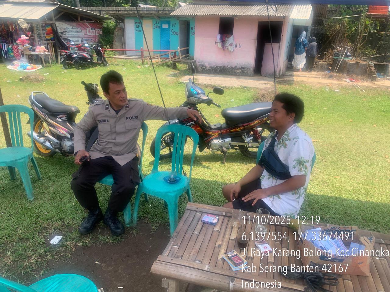_*POLRES CILEGON*_ | Polsek Cinangka Polres Cilegon Polda Banten melaksanakan kegiatan patroli Serta memberikan Himbauan kepada pengunjung pantai yang berwisata dan Sambang kepada petugas penjaga pantai dan juga antisipasi harkamtibmas di Wilayah Hukum Polsek Cinangka Polres Cilegon Polda Banten, Sabtu (11/10/2025).