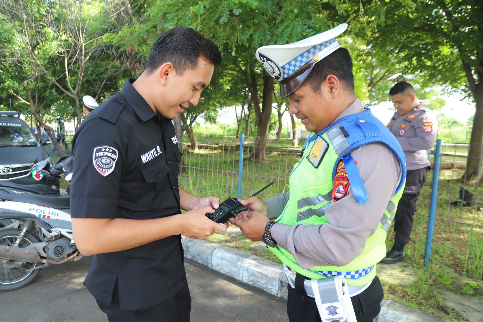 Anggota Tik Polres Cilegon Menyiapkan Sarana dan Prasarana Alkom Dalam pelaksanaan tugas tersebut anggota TIK Polres Cilegon yang bertanggung jawab untuk menyiapkan peralatan sarana alkom berupa handy talky. Selain itu agar di tidak ada gangguan pada jaringan, sebelum pelaksanaan anggota TIK melakukan pemeriksaan terhadap sarana dan prasarana tersebut . Satu jam sebelum sarana alkom digunakan. Kapolres Cilegon AKBP. DR. MARTUA RAJA TARIPAR LAUT SILITONGA. melalui Kasi TIK IPTU Lukman menyampaikan bahwa “untuk menunjang kelancaran penyampaian informasi anggota TIk Polres Cilegon selalu memeriksa sarana dan prasarana tersebut, sebelum maupun pada saat pelaksanaan akan selalu di monitor