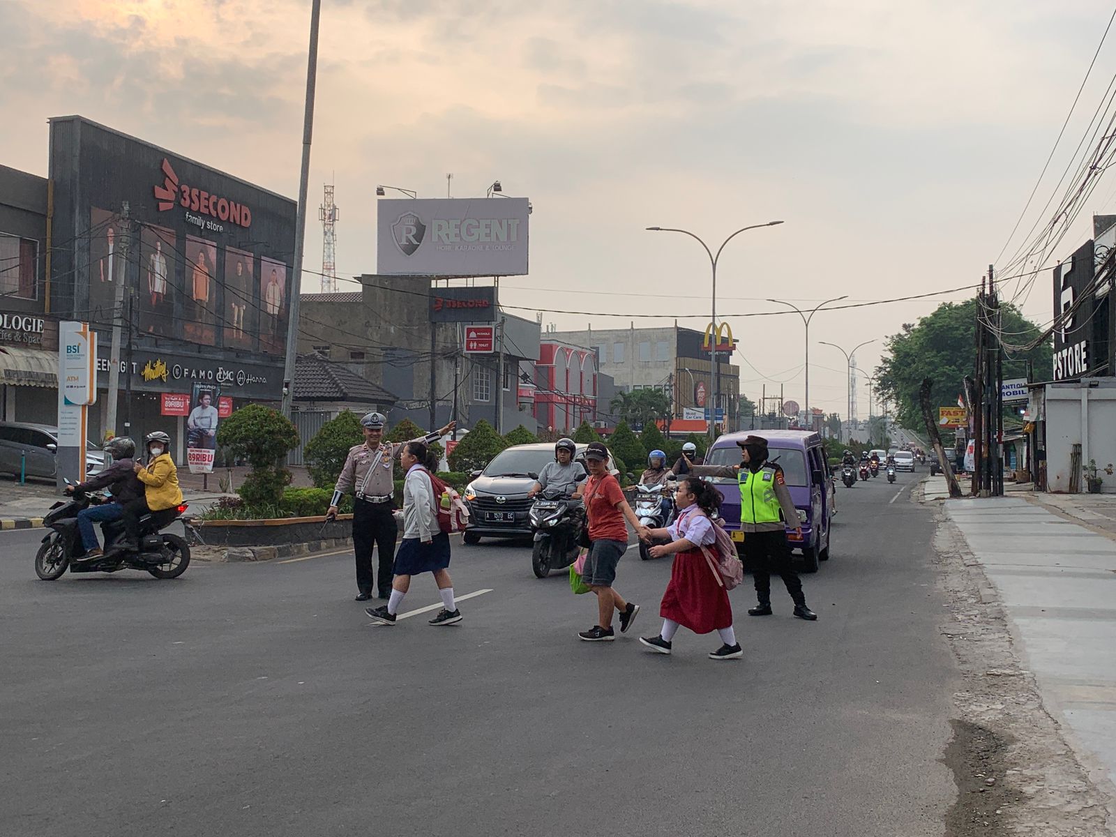 Personel Sium Polres Cilegon Rutin Laksanakan Strong Point Pagi di Simpang Jombang