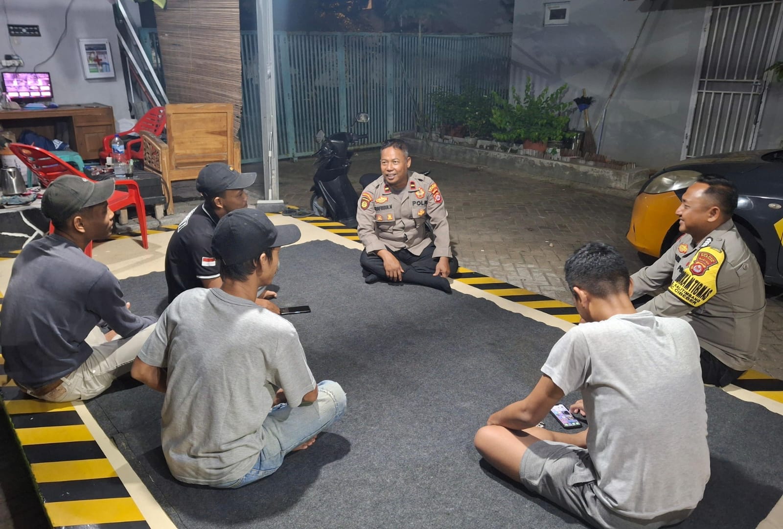 CILEGON- Dalam Rangka Ciptakan situasi kamtibmas kondusif Polsek Cibeber laksanakan himbauan kamtibmas kepada rt dan rw serta warga sekitar agar selalu menjaga kamtibmas secara bersama-sama salah satunya mengaktifkan dan meningkatkan kegiatan siskamling di wilayahnya. serta sebagai Cooling Sistem Kamtibmas di wilayah binaan agar Aman, Kondusif dan terkendali.