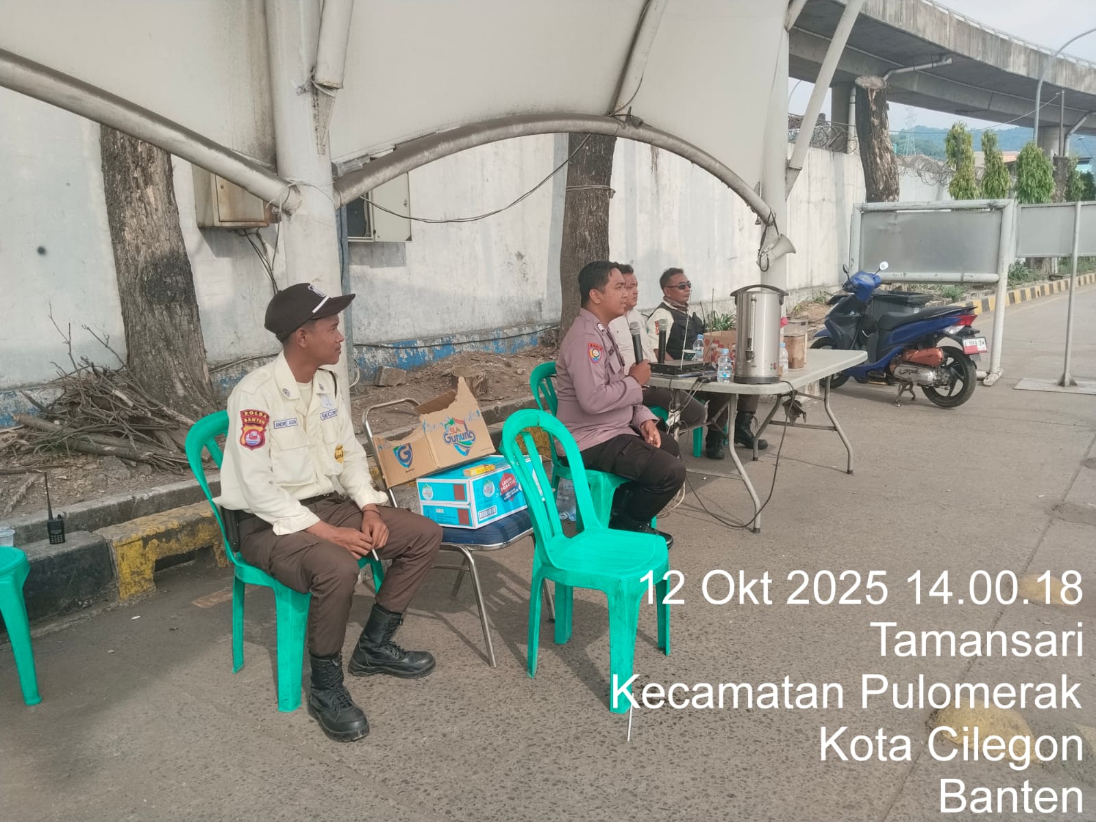 Cilegon - Personel Polsek Kskp Merak Polres Cilegon Polda Banten melaksanakan sambang dan patroli kawasan pelabuhan merak dalam rangka menjaga Harkamtibmas di Kawasan Pelabuhan Merak, Minggu (12/10/2025).