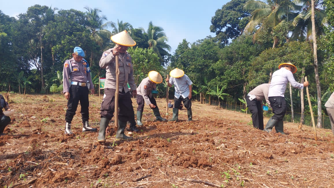 Penanaman Jagung serentak Kuartal IV Seluruh Indonesia di lahan milik kelompok tani Bpk. Maman Rt. 01/01 Kp. Macute Kel. Angsana Kec. Mancak-Serang daerah hukum Polres Cilegon.