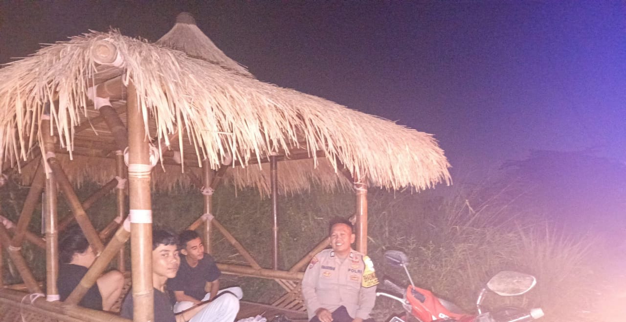Patroli Malam , Bripka Zenal Bersama Brigadir Chaeruman Polsek Bojonegara Sambangi Warga di Pos Ronda Dan Sosialisasi Call Center 110