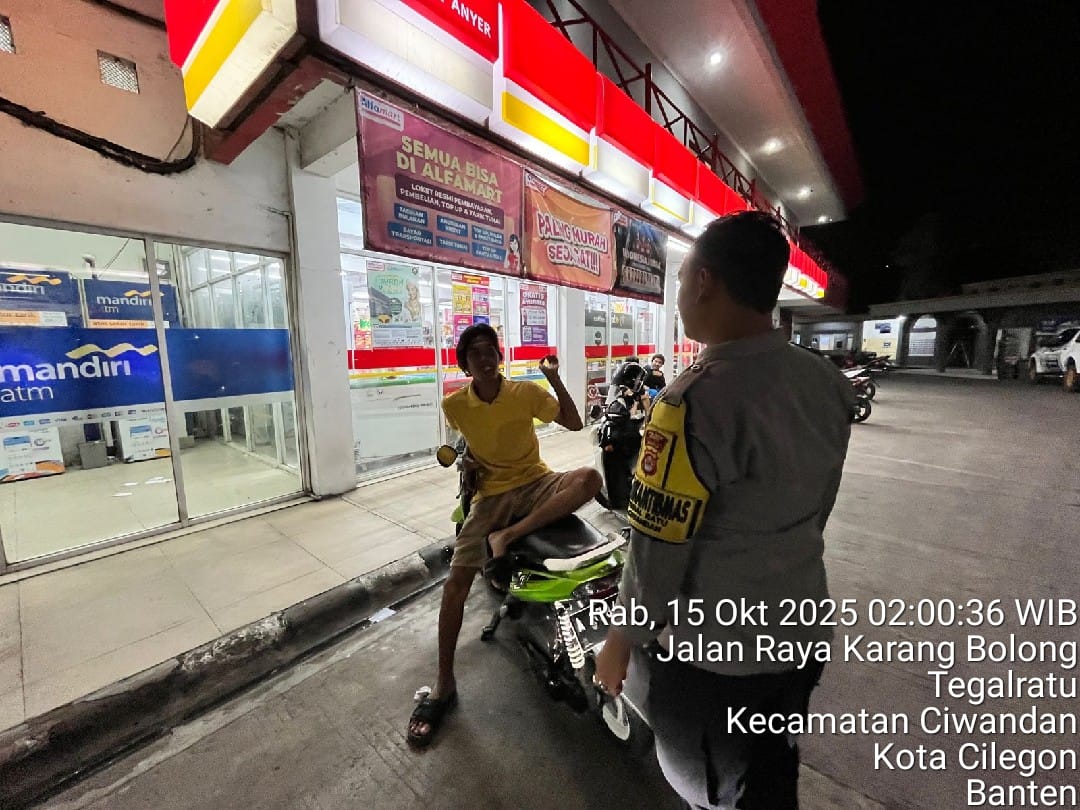 Cilegon - Personil Polsek Ciwandan Polres Cilegon Polda Banten melaksanakan patroli malam untuk mengantisipasi potensi kejahatan, khususnya pembobolan minimarket, di daerah hukum Polsek Ciwandan. Kegiatan ini bertujuan untuk meningkatkan keamanan dan memberikan rasa aman kepada masyarakat, Rabu (15/10/2025).