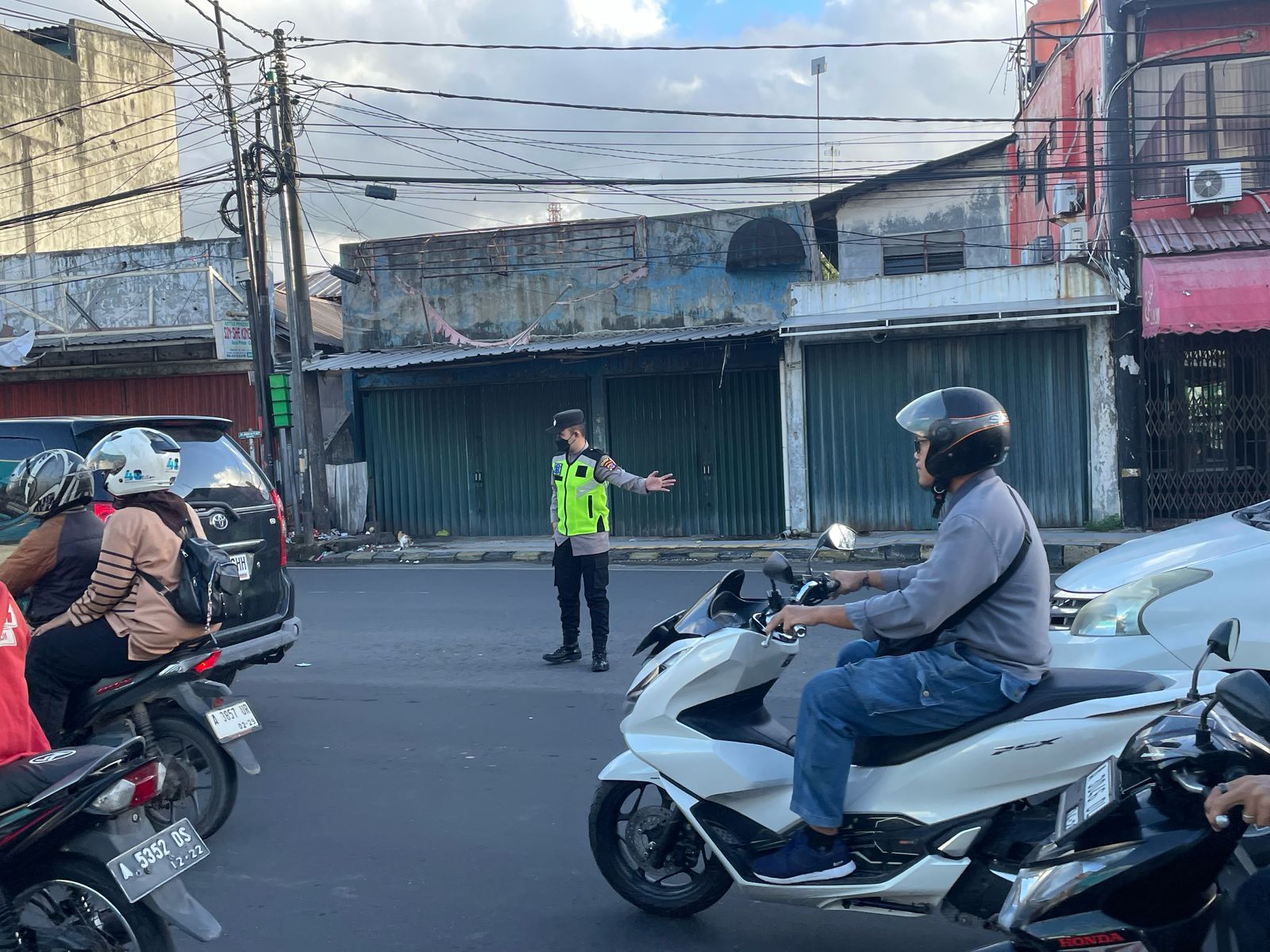 Cilegon,Polres Cilegon Polda Banten Pada Kamis/09/10/2025 Pukul 06.30 Wib, Personil Siwas Polres Cilegon, Brigpol Hadi sudrajat melaksanakan kegiatan pengaturan arus lalu lintas di Jalur Protokol jalan utama Kota Cilegon tepat nya di jalur protokol Kota Cilegon.