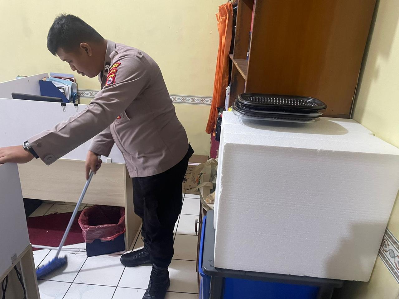 Anggota Bag SDM Polres Cilegon, Akivitas dalam pelaksanaan membersihkan ruangaan menjadi kegiatan aktif setiap hari.