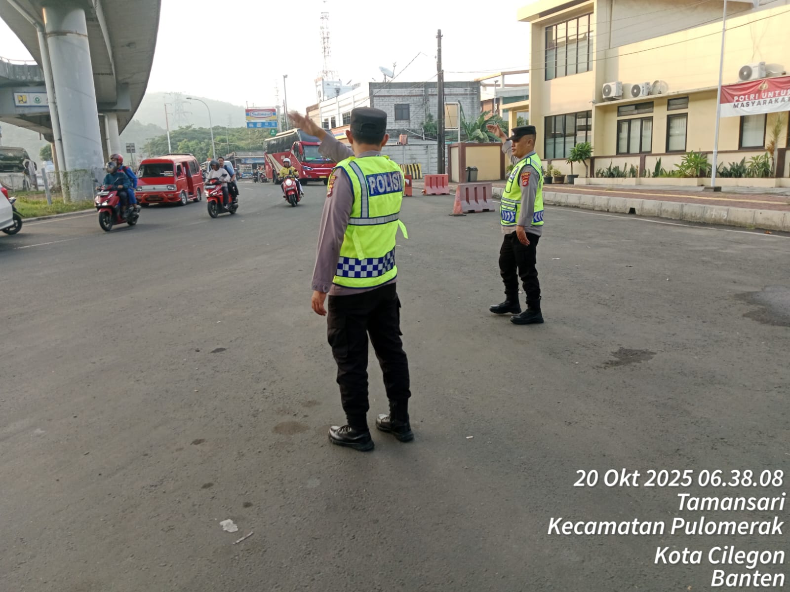 Polsek KSKP Merak Siaga Atur Arus Kendaraan Menuju Kapal Ferry di Pelabuhan