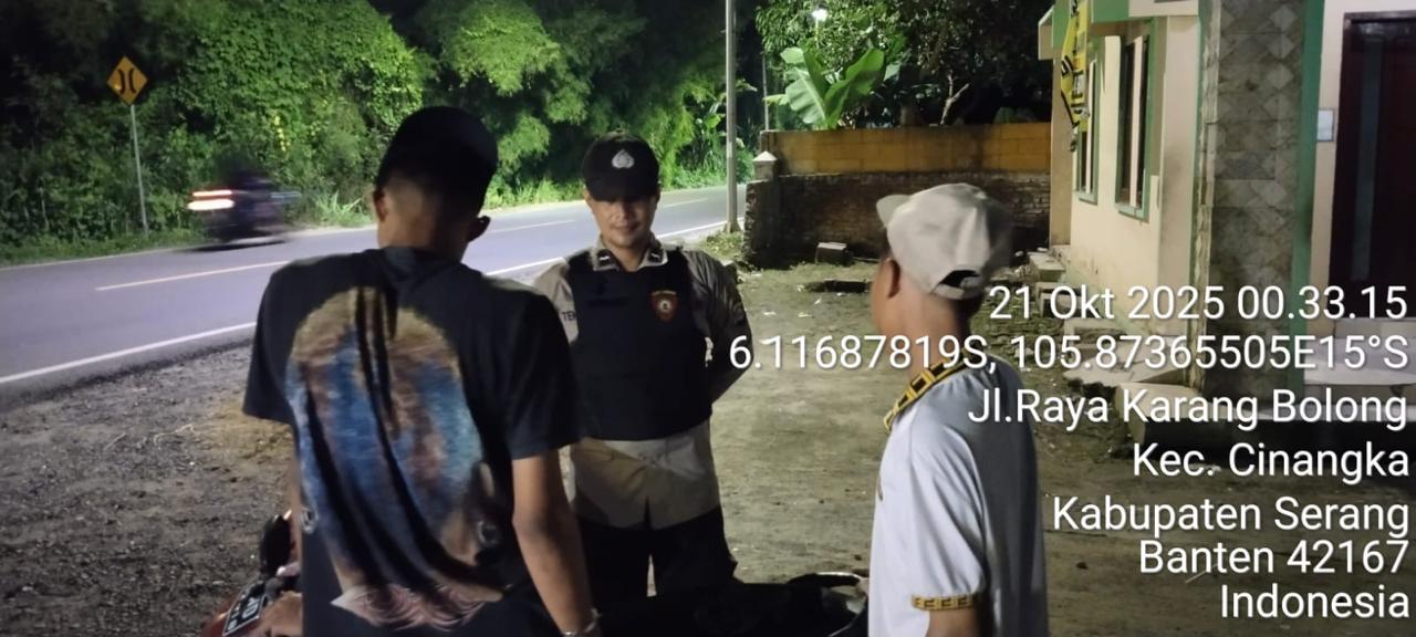 *Cilegon* – Dalam Rangka Pencegahan Kejahatan Jalanan dan Memelihara situasi keamanan dan menjaga serta memberikan rasa aman dan nyaman di masyarakat,Salah satu upaya untuk mewujudkan hal tersebut sebagaimana yang dilakukan oleh Personil Polsek Cinangka Polres Cilegon Polda Banten melaksanakan giat patroli blue light malam hari hingga menjelang pagi, Selasa (21/10/2025).
