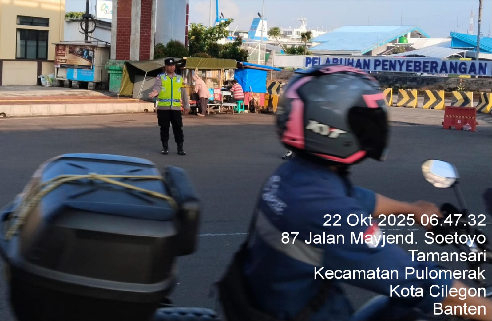 Personil Polsek KSKP Merak Atur Antrian Kendaraan di Pelabuhan Ferry Merak