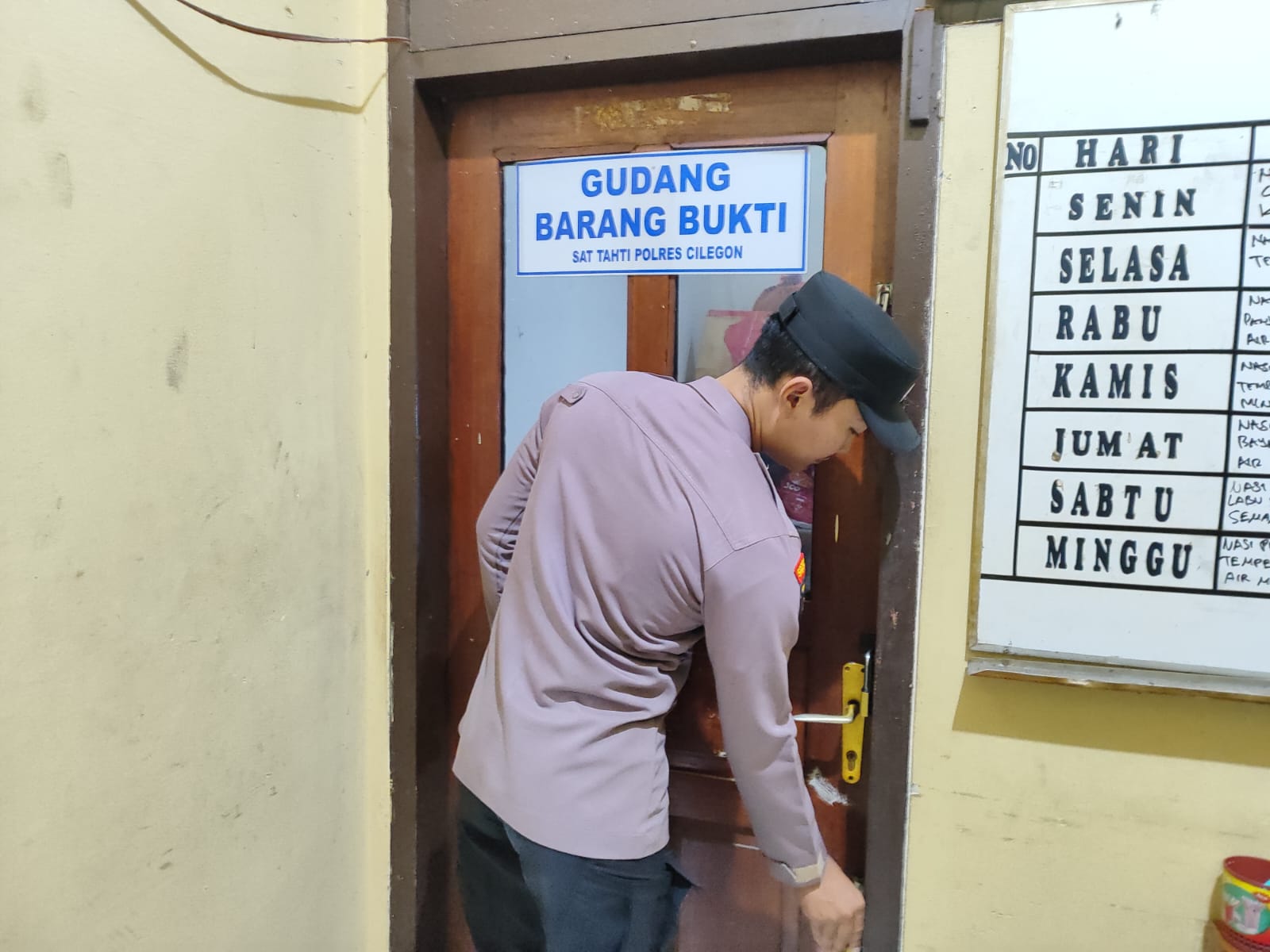 Anggota Piket Tahti Polres Cilegon Harus Melakukan Kegiatan Rutin Pengecekan Kelengkapan dan Barang Bukti Di Gudang Barang Bukti.