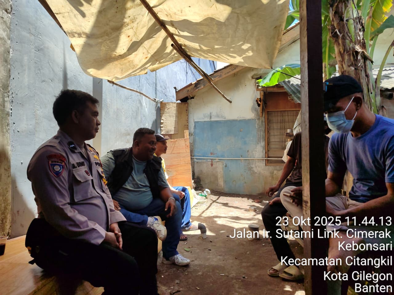Cilegon - Bhabinkamtibmas Kelurahan Kepuh Polsek Ciwandan Polres Cilegon Polda Banten AIPDA Mere Erlansyah Menyapa warga serta Ajak warga Binaannya untuk berperan aktif jaga keamanan lingkungan serta jalin komunikasi agar tercipta situasi aman di daerah hukum Polsek Ciwandan Polres Cilegon Polda Banten, Kamis (23/10/2025).