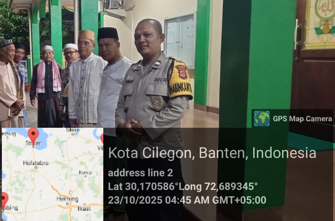 Cilegon - Dalam Rangka Memakmurkan Masjid Dan Sambang,Bhabinkamtibmas Polsek Ciwandan Polres Cilegon Polda Banten Sholat Berjama’ah dan Bersilaturahmi kepada para tokoh Agama sebagai upaya meningkatkan Ukhuwah Islamiyah dalam menjalin silaturahmi dan membangun komunikasi yang baik, Kamis (23/10/2025).