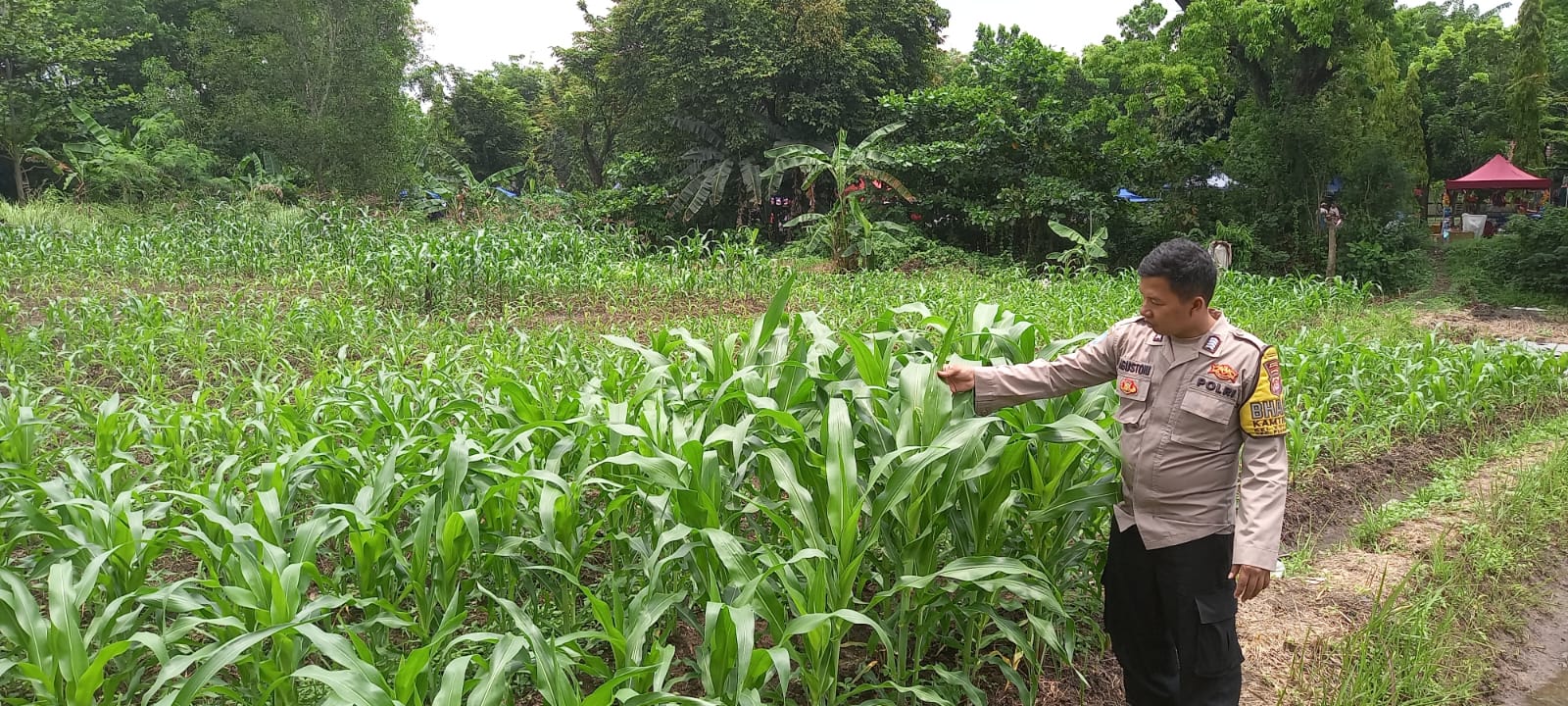 -POLRES CILEGON–Polda Banten. Bripka Agustoni, Babinkamtibmas Kelurahan Kotabumi, Kecamatan Purwakarta, Kota Cilegon, melaksanakan pengecekan rutin terhadap tanaman jagung di wilayah binaannya,Sabtu. (25/10/2025). Kegiatan ini bertujuan untuk memastikan pertumbuhan tanaman jagung berjalan baik dan mendukung ketahanan pangan di wilayah tersebut.