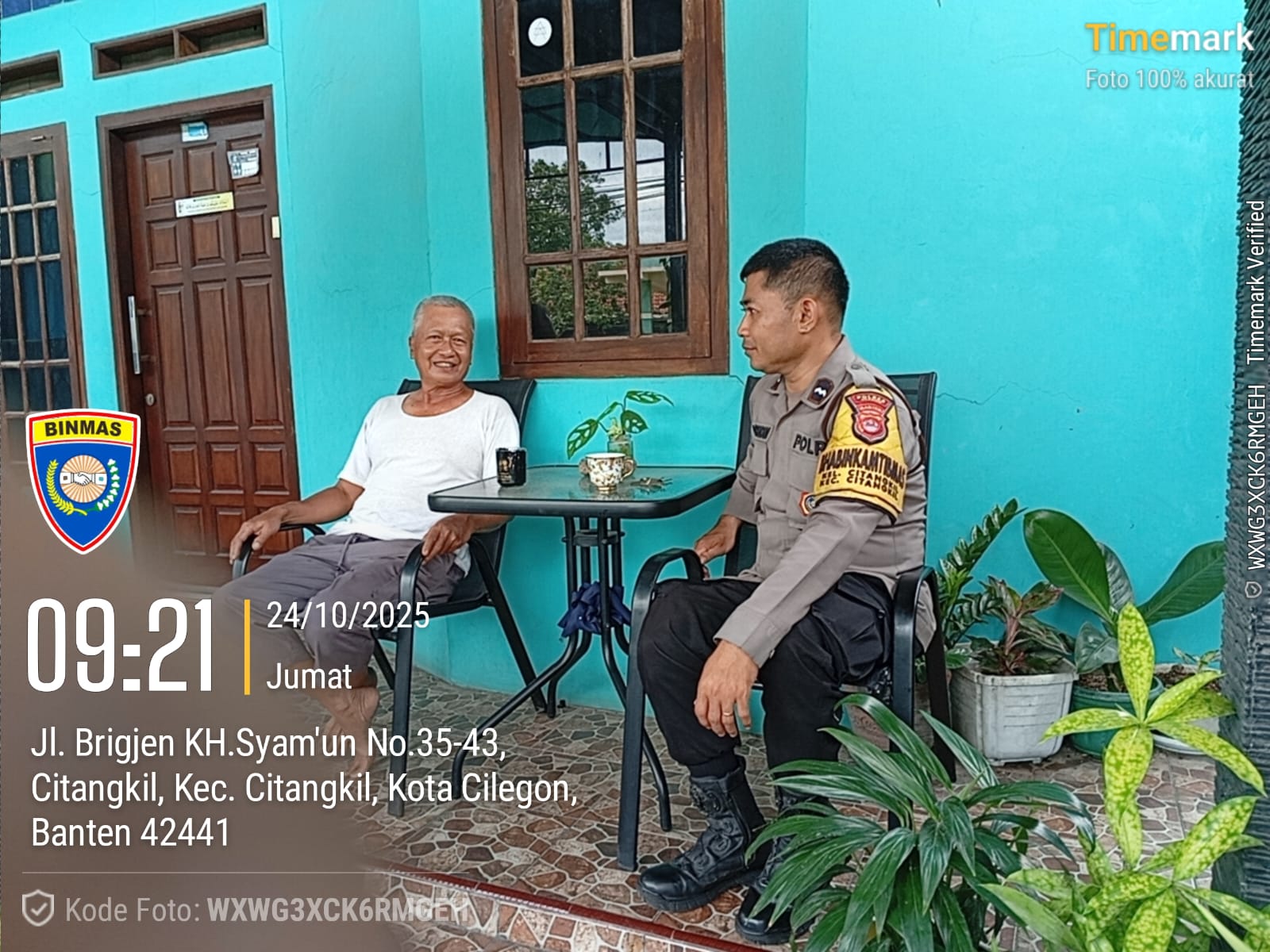 Cilegon - Bhabinkamtibmas Polsek Ciwandan Polres Cilegon Polda Banten  Melaksanakan kegiatan Dialogis/Sambang Door to Door Sistem (DDS) Di daerah binaannya serta memberikan Pesan-pesan Kamtibmas Guna Menciptakan situasi Harkamtibmas yang Aman dan nyaman, Sabtu (25/10/2025).