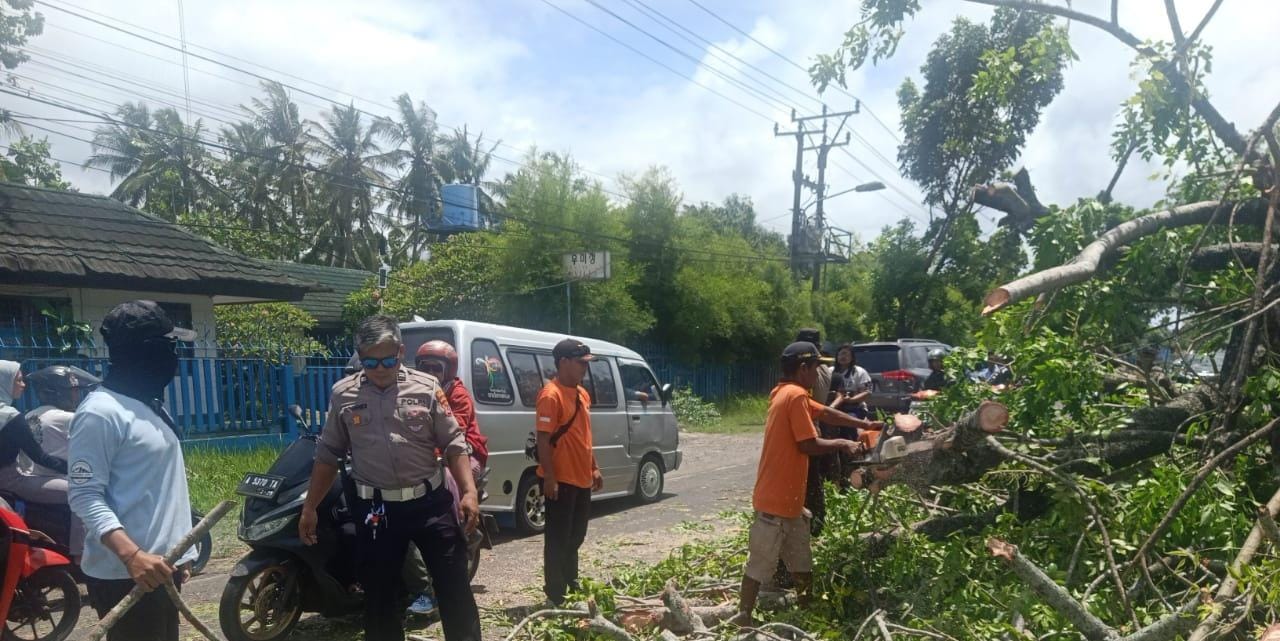 Martua Raja Taripar Laut Silitonga Melalui Kapolsek Anyar Polres Cilegon Polda Banten IPTU Iwan Sofiyan Mengatakan di Jl Raya Anyar-Cinangka tepatnya di depan RM Bintang Laut Desa Anyar Kec. Anyar Kab. Serang telah terjadi pohon tumbang yang diakibatkan oelhn angin kencang. Tidak ada korban jiwa dalam kejadian tersebut, namun berdampak pada arus lalu lintas dan menimbulkan antrian kendaraan dari arah Cilegon menuju Anyar maupun sebaliknya