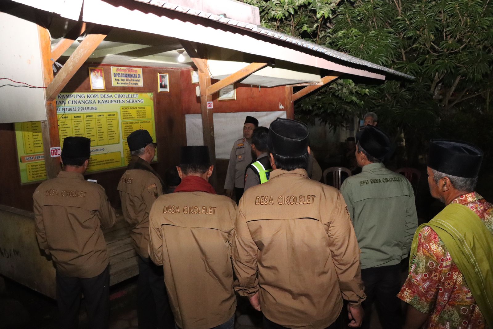 Cilegon – Dalam rangka memperkuat kemitraan antara Polri dan masyarakat dalam menjaga keamanan lingkungan, Kapolres Cilegon Polda Banten AKBP Dr Martua Raja Taripar Laut Silitonga S.H., S.I.K., M.Si melalui Kasat Binmas IPTU Muhyidin, S.H., melaksanakan kunjungan ke Pos Kamling Kampung Kopi RT 001 RW 008, Desa Cikolelet, Kecamatan Cinangka, Kabupaten Serang, Sabtu (25/10/2025) malam.