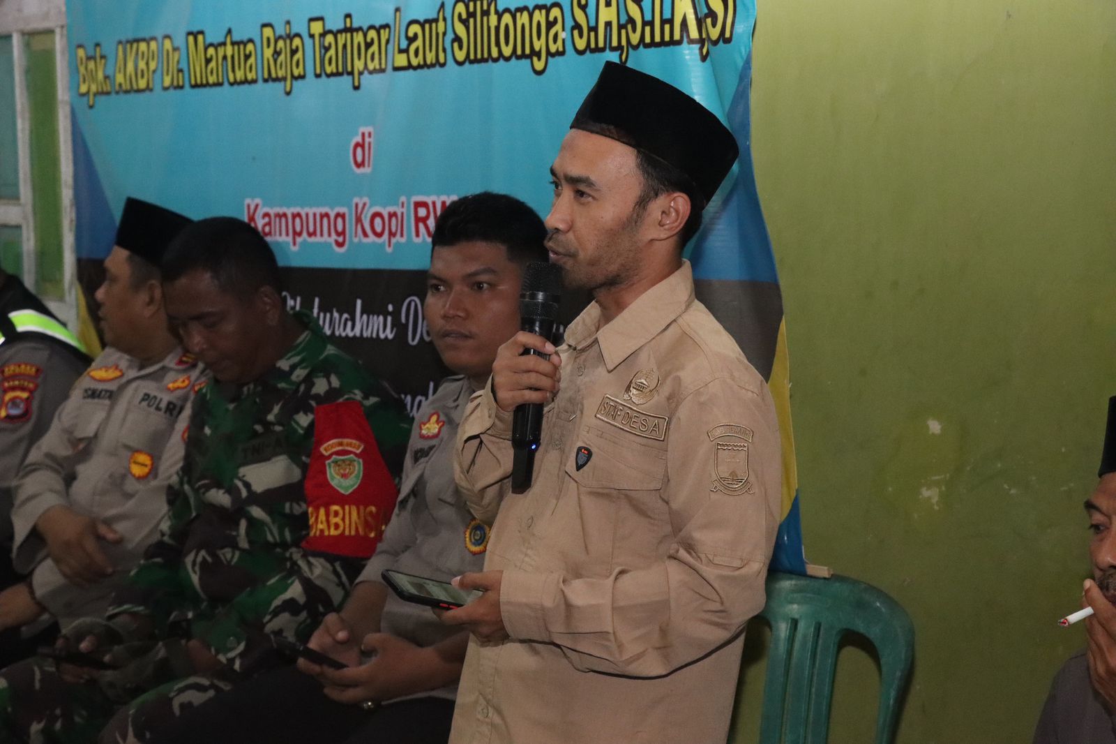 Sementara itu, Kasat Binmas Polres Cilegon IPTU Muhidin, yang mewakili Kapolres AKBP Dr. Martua Raja Taripar Laut Silitonga, menyampaikan terima kasih atas sambutan hangat masyarakat Kampung Kopi. Ia menegaskan bahwa tugas Polri bukan hanya menjaga keamanan, tetapi juga menjadi pelindung, pengayom, dan pelayan masyarakat.