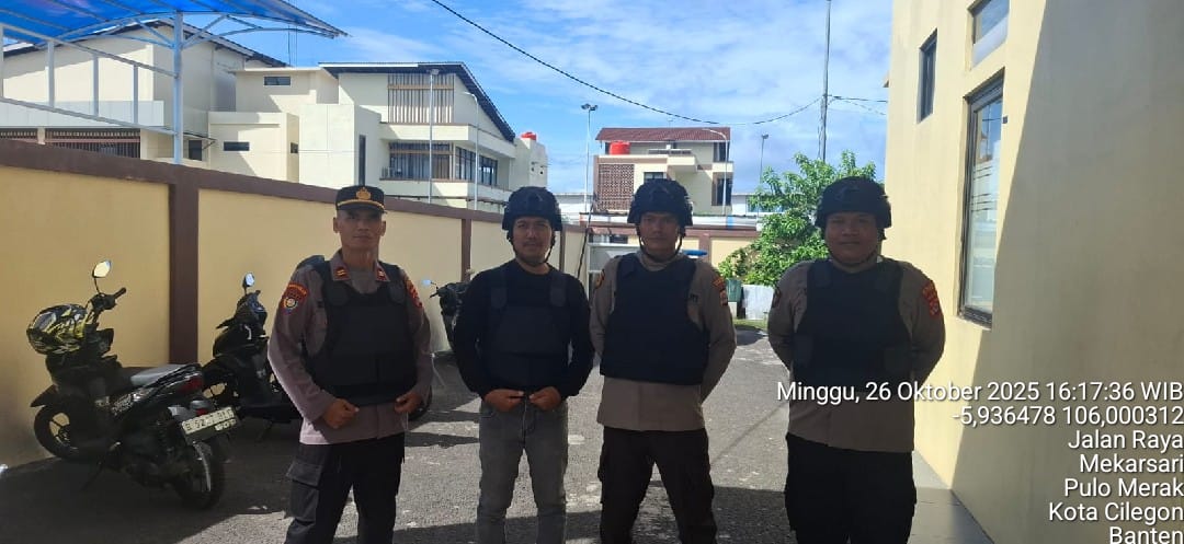 Cilegon - Personel piket jaga Polsek Kskp Merak Polres Cilgon Polda Banten melaksanakan siaga 1 Polsek pelaksanaan Sispam Mako oleh piket siaga dipimpin oleh Kspk Polsek Kskpy Merak Polres Cilegon Polda Banten, Minggu (26/10/2025).