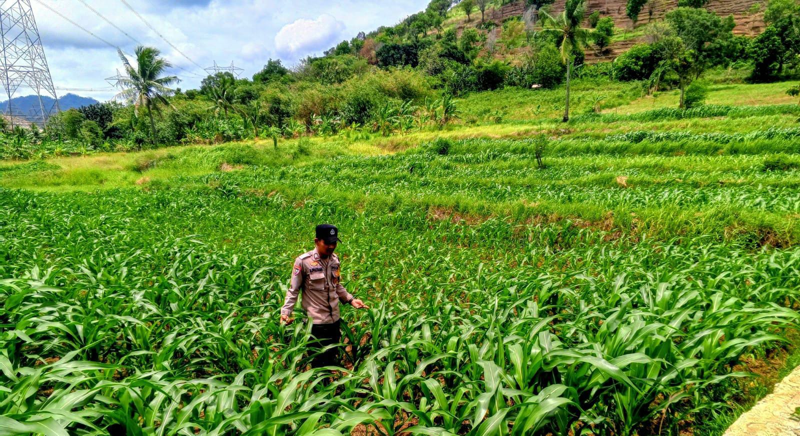 Brigadir Andri Bhabinkamtibmas Bersama Petani ketahanan pangan monitoring tanaman Pertumbuhan jagung petani binaannya