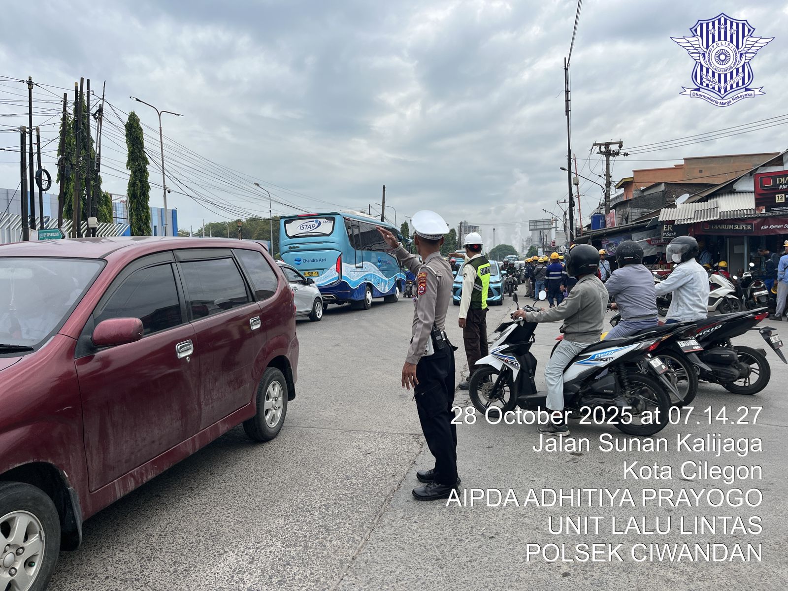 Cilegon - Dalam Mewujudkan Aksi Nyata Pelayanan Kepada Masyarakat,Personil Polsek Ciwandan Polres Cilegon Polda Banten Laksanakan Strong Poin Pengaturan Lalu-lintas, Selasa (28/10/2025).