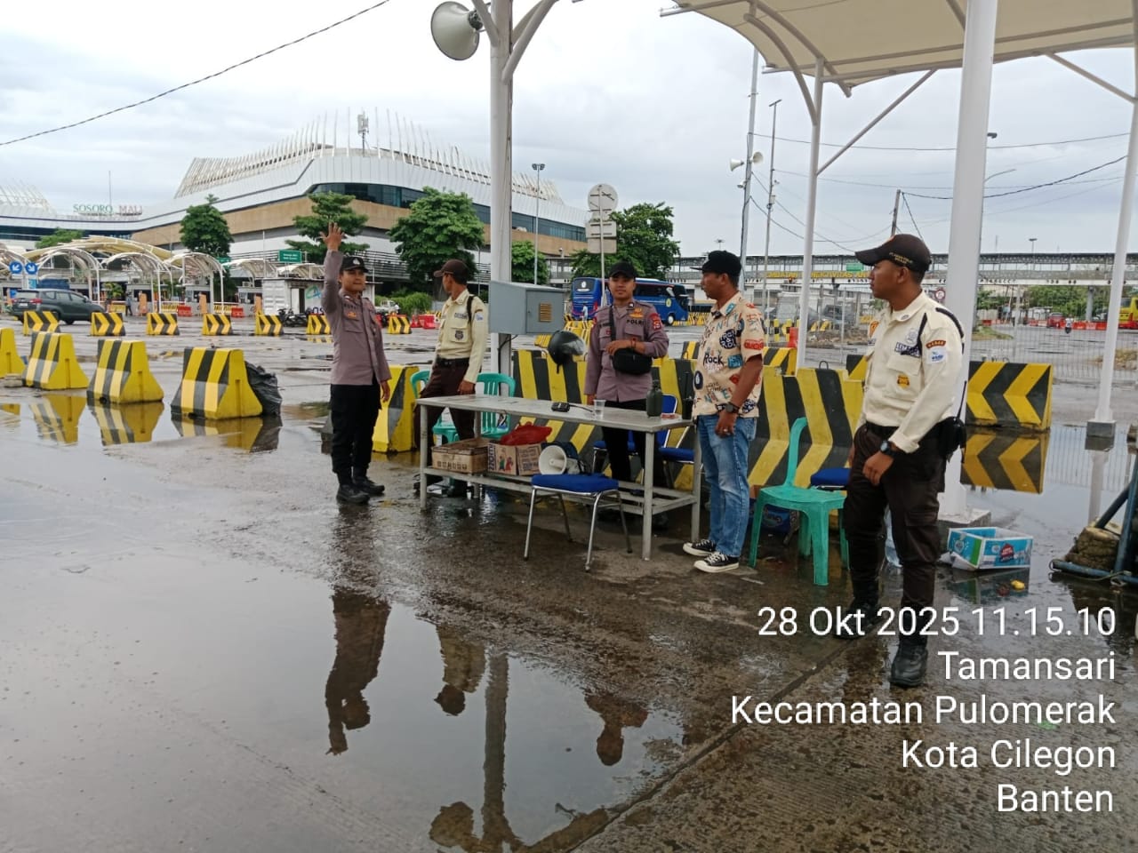 Cilegon - Personel Polsek Kskp Merak Polres Cilegon Polda Banten melaksanakan sambang dan patroli kawasan pelabuhan merak dalam rangka menjaga Harkamtibmas di Kawasan Pelabuhan Merak, Selasa (28/10/2025).