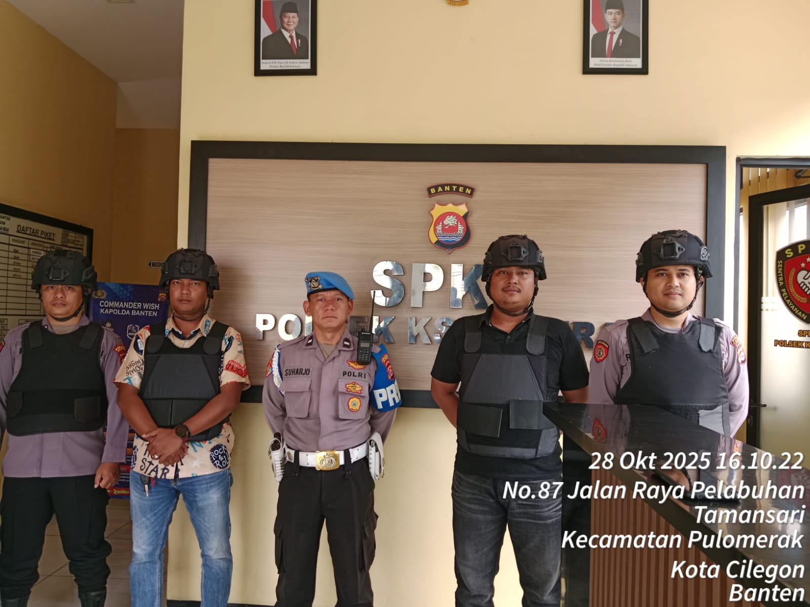 Cilegon - Personel piket jaga Polsek Kskp Merak Polres Cilgon Polda Banten melaksanakan siaga 1 Polsek pelaksanaan Sispam Mako oleh piket siaga dipimpin oleh Kspk Polsek Kskpy Merak Polres Cilegon Polda Banten, Selasa (28/10/2025).