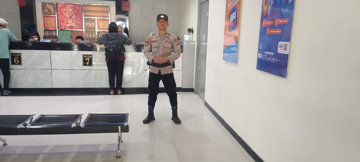 Personil satpamobvit polres cilegon melaksanakan pengamanan bank BRI