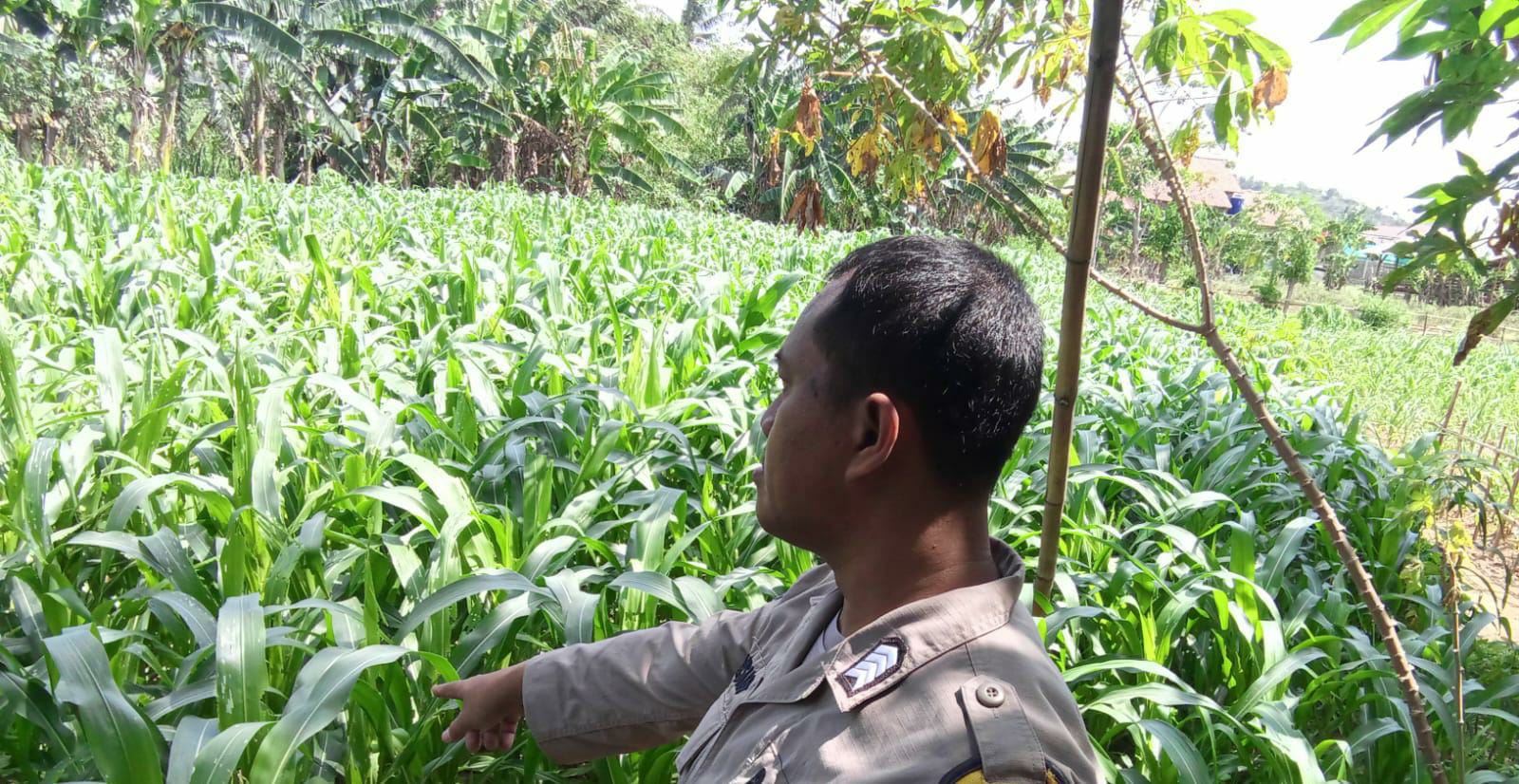 Kegiatan berlangsung lancar dan diakhiri dengan diskusi ringan antara petani dan Bhabinkamtibmas mengenai cara mengantisipasi gangguan terhadap tanaman jagung serta rencana panen ke depan.