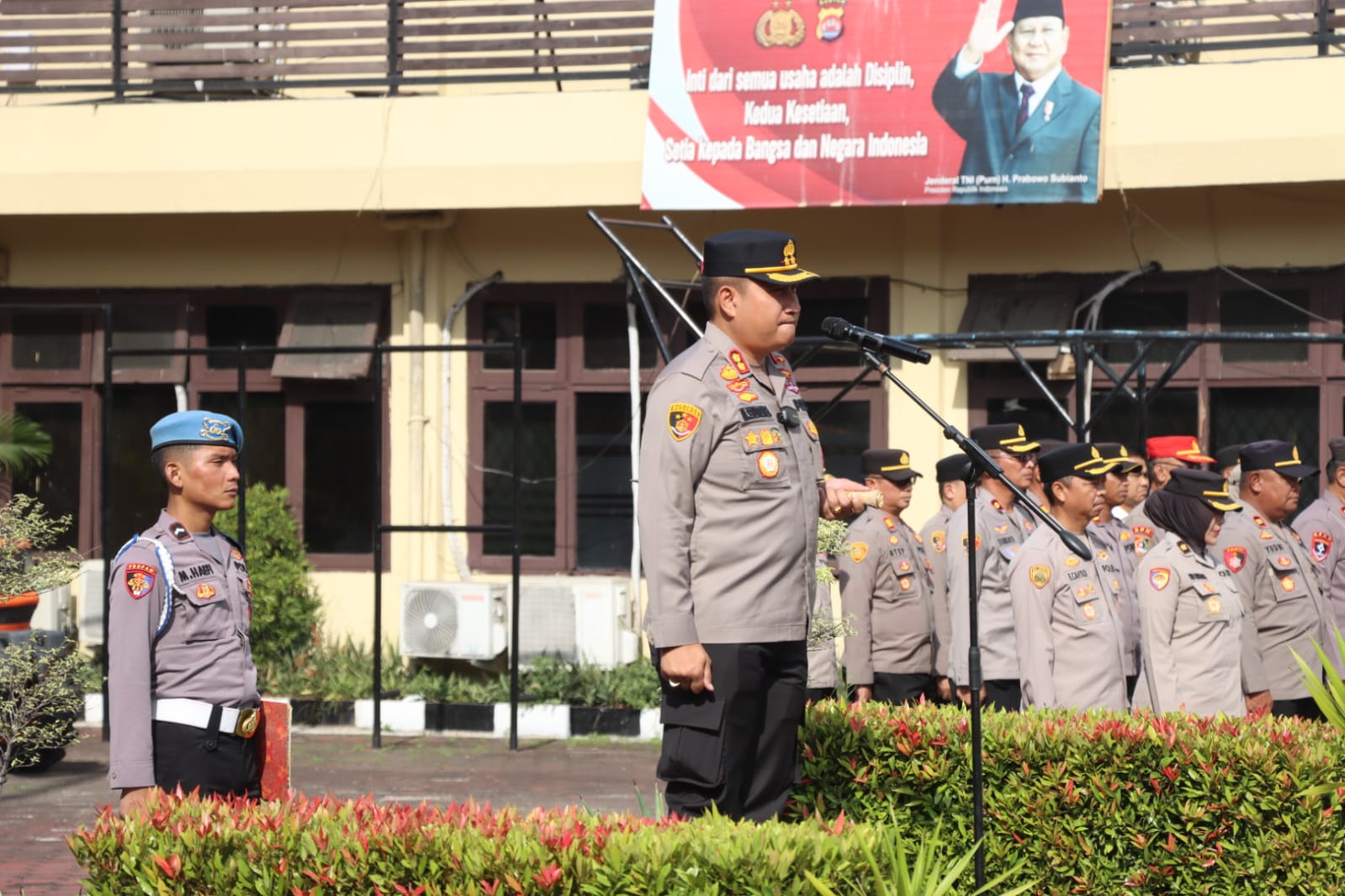 Apel yang berlangsung pukul 08.00 WIB tersebut dipimpin langsung oleh Kapolres Cilegon, AKBP Dr. Martua Raja Taripar Laut Silitonga, S.H., S.I.K., M.Si., dan diikuti oleh para Pejabat Utama Polres Cilegon, para Kapolsek jajaran, anggota Polres dan perwakilan Polsek jajaran, serta pengasuh dari SPN Polda Banten.