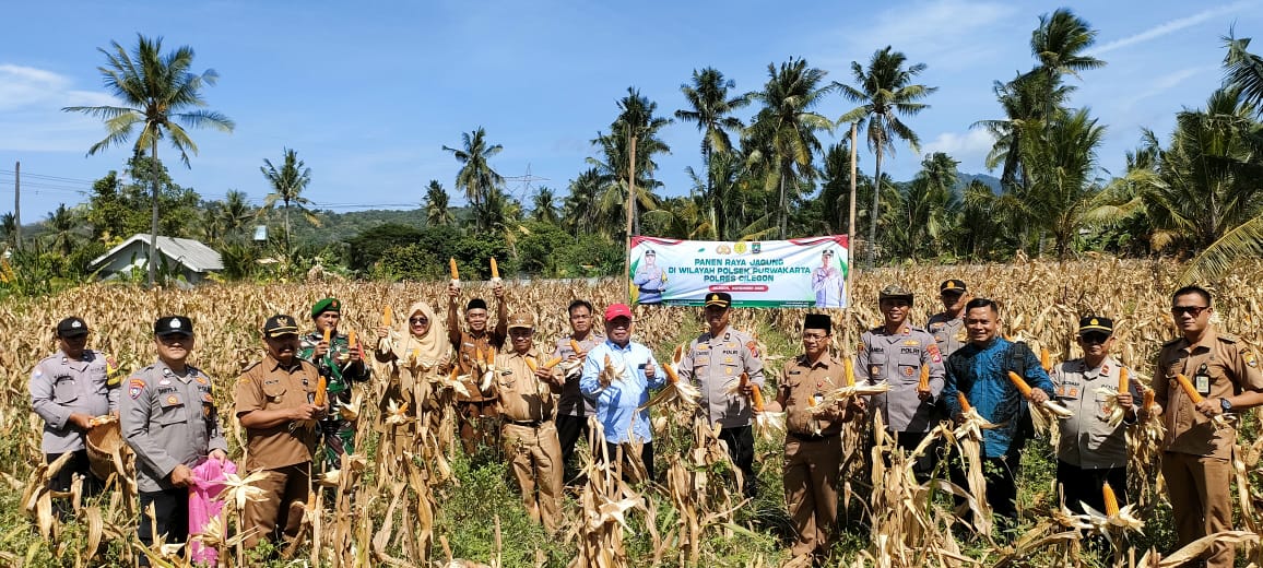 -POLRES CILEGON- Polsek Purwakarta menggelar panen raya jagung di wilayah hukumnya, bekerja sama dengan Forkopincam Kecamatan Pulo Harta, tokoh masyarakat, warga sekitar, serta tim dari Bulog. Acara ini dipusatkan di lingkungan Cilentrang, Purwakarta, dengan fokus pada peningkatan kesejahteraan petani dan ketahanan pangan lokal.Selasa.(04-11-2025).