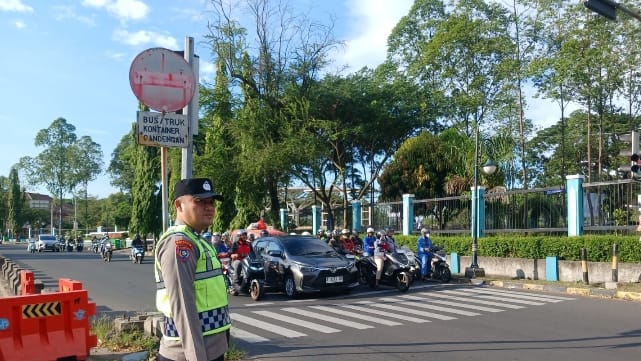 Pengaturan lalu lintas dimulai sejak pukul 06.00 WIB, dengan menempatkan personel di titik-titik strategis di sekitar simpang. Petugas membantu menyeberangkan pejalan kaki, mengatur kendaraan yang keluar masuk dari jalan-jalan kecil, serta memberikan teguran kepada pengendara yang melanggar aturan lalu lintas.