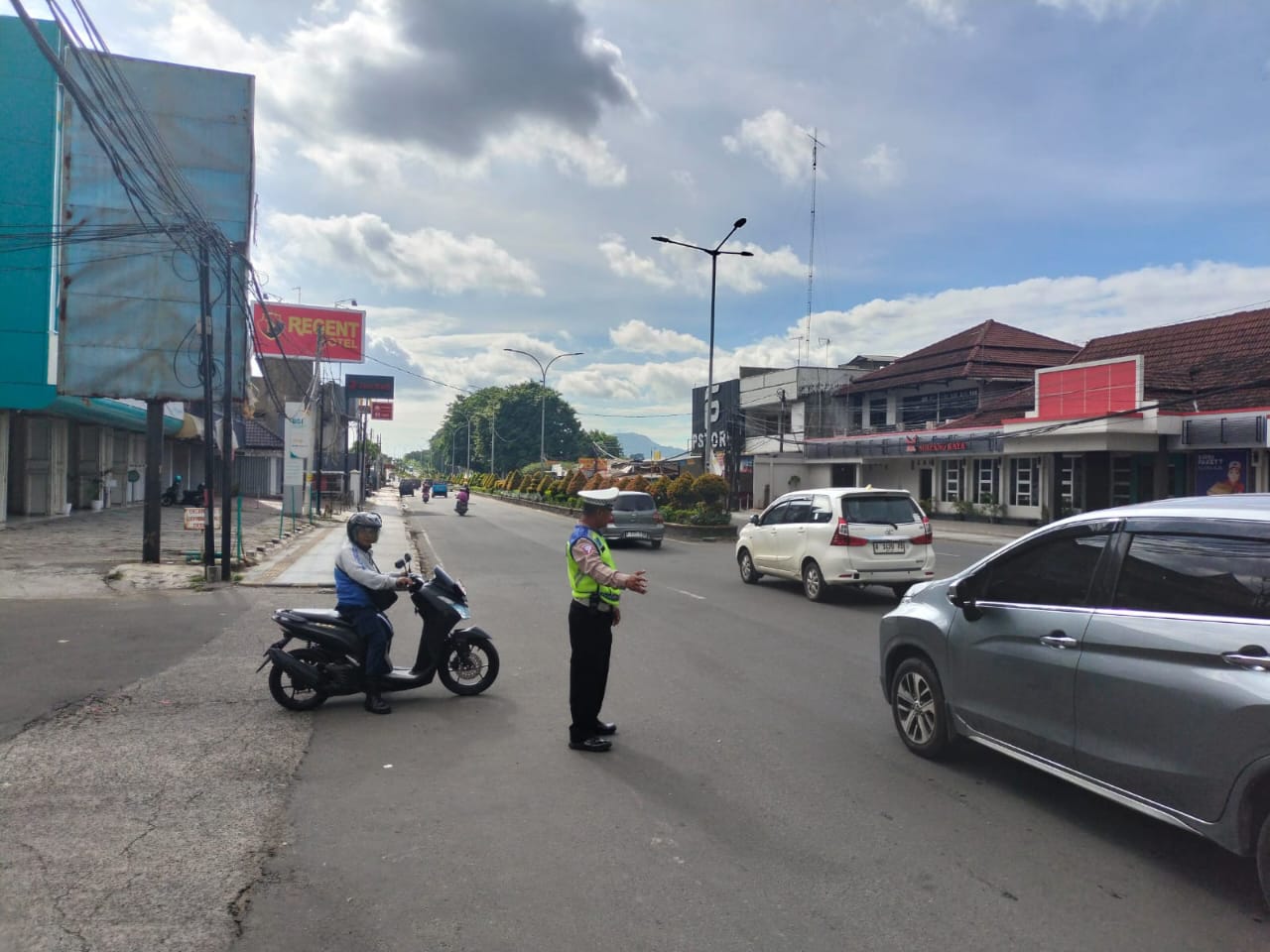 Unit Lantas Polsek Cilegon Polres Cilegon dan Dishub cilegon urai kemacetan lalin.