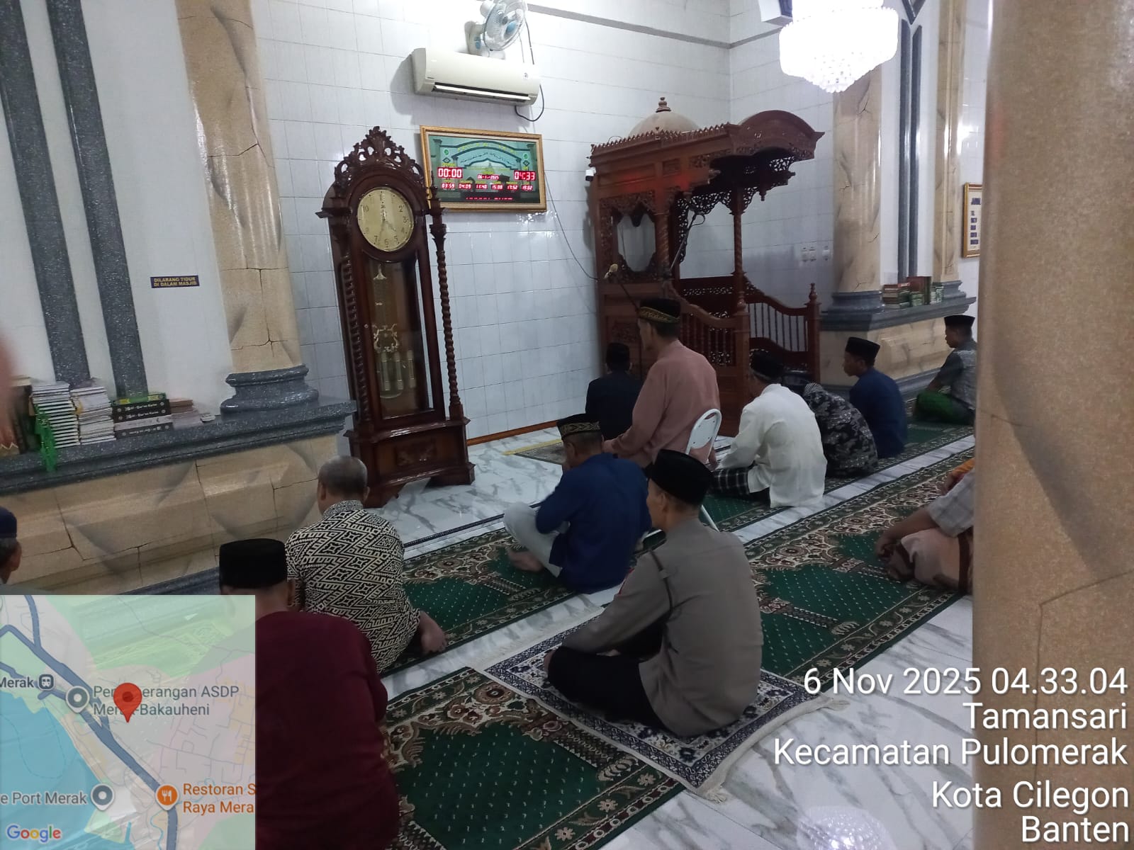 Cilegon – Personil Kskp Merak Polres Cilegon Polda Banten menggelar kegiatan Pembinaan Rohani dengan shalat subuh keliling di Masjid Yang ada Di Daerah hukum Polsek Kp Merak Polres Cilegon Polda Banten, Kamis (06/11/2025).