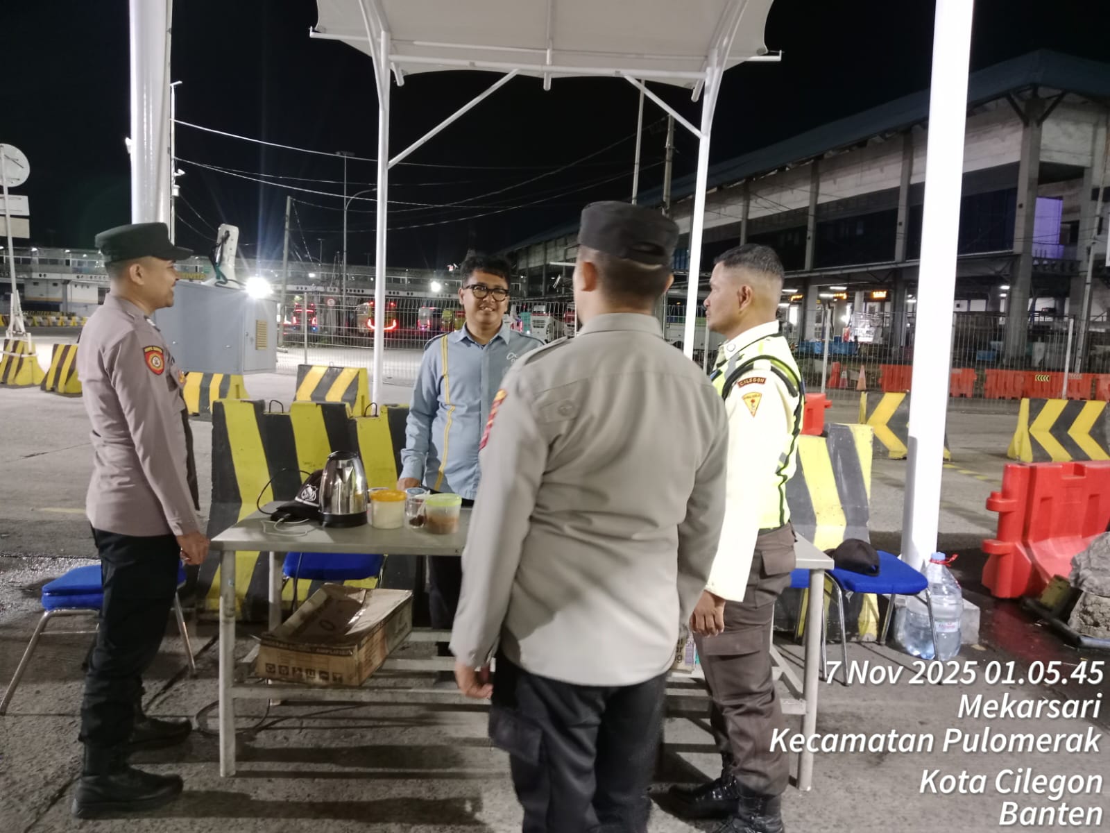 Cilegon - Personil Polsek Kskp Merak Polres Cilegon melaksanakan patroli di kawasan pelabuhan merak memberikan rasa aman dan damai, Jumat (07/11/2025)